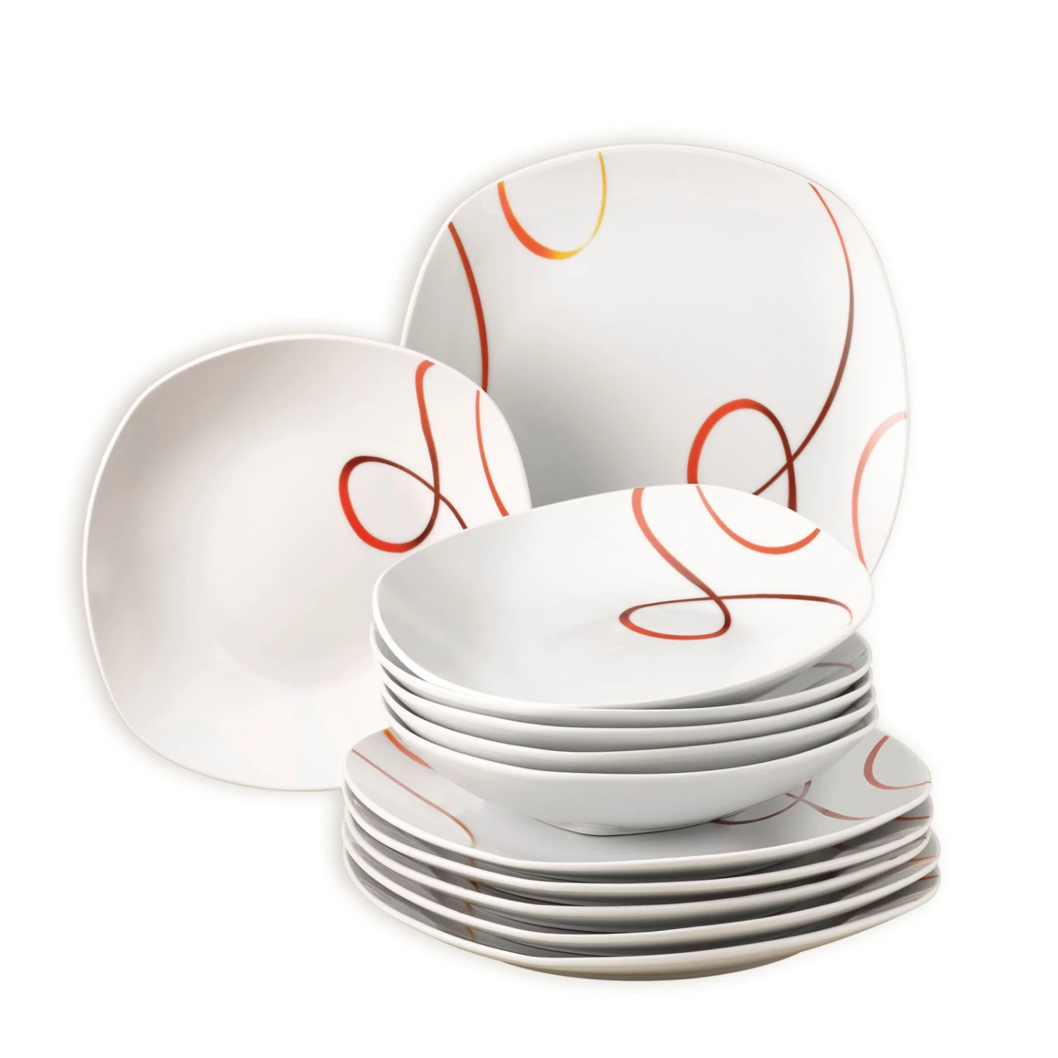 12-teiliges Tafelservice – weiß-orange – eckig