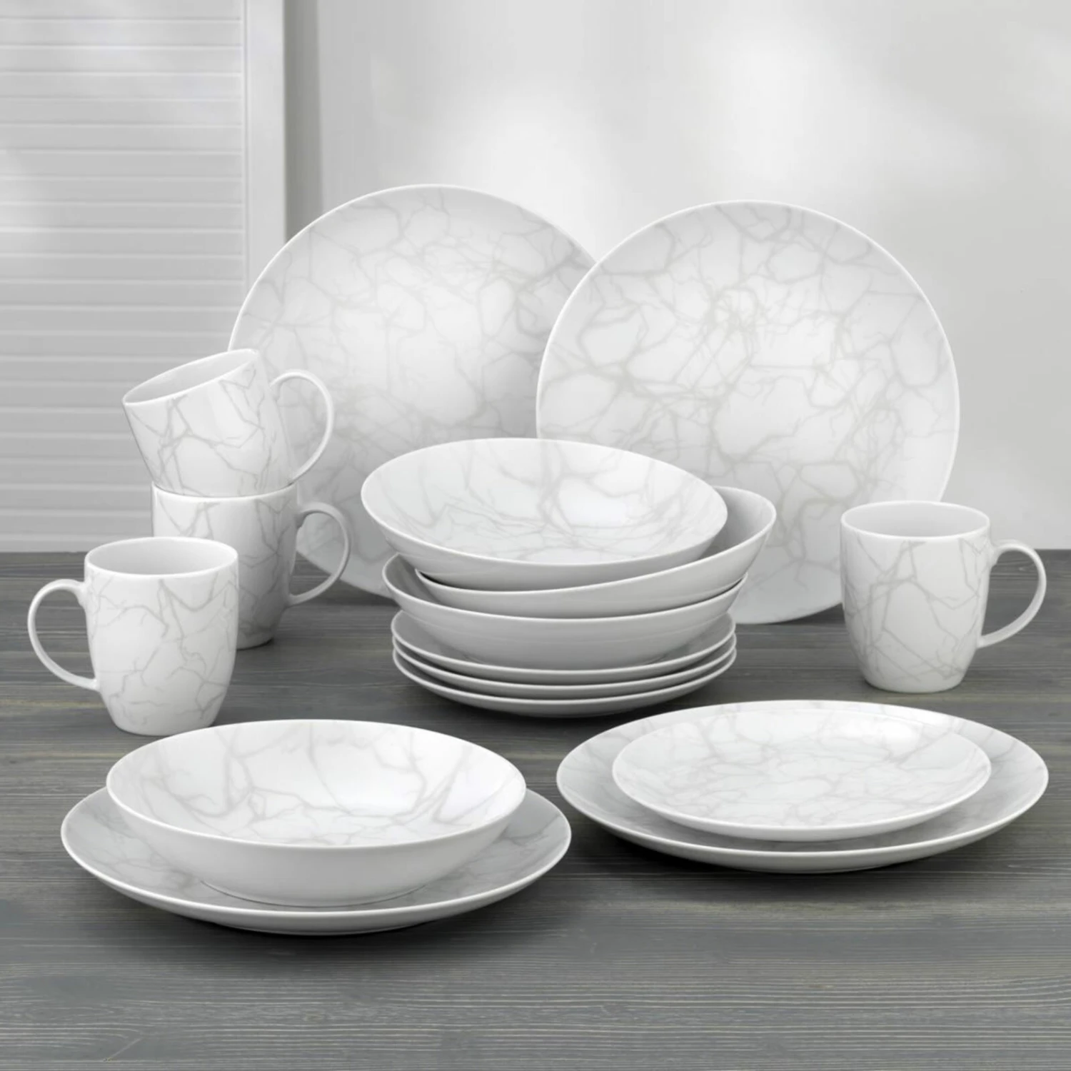 16-teiliges Kombiservice – weiß marmoriert – Porzellan