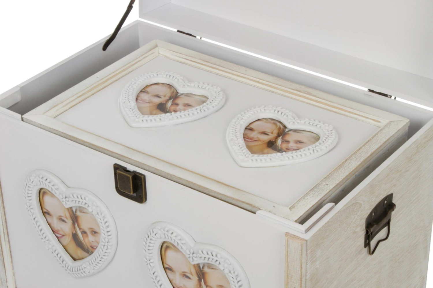 Das 2-teilige Holztruhen-Set SAMU ist nicht nur dekorativ und bietet Platz für kleine Gebrauchsgegenstände, zudem können Sie in den beiden Wechselrahmen insgesamt acht Ihrer Lieblingsbilder platzieren. So werden Ihre Fotos perfekt in Szene gesetzt. Das Set ist natürlich auch ein tolles Geschenk zum Geburtstag.
