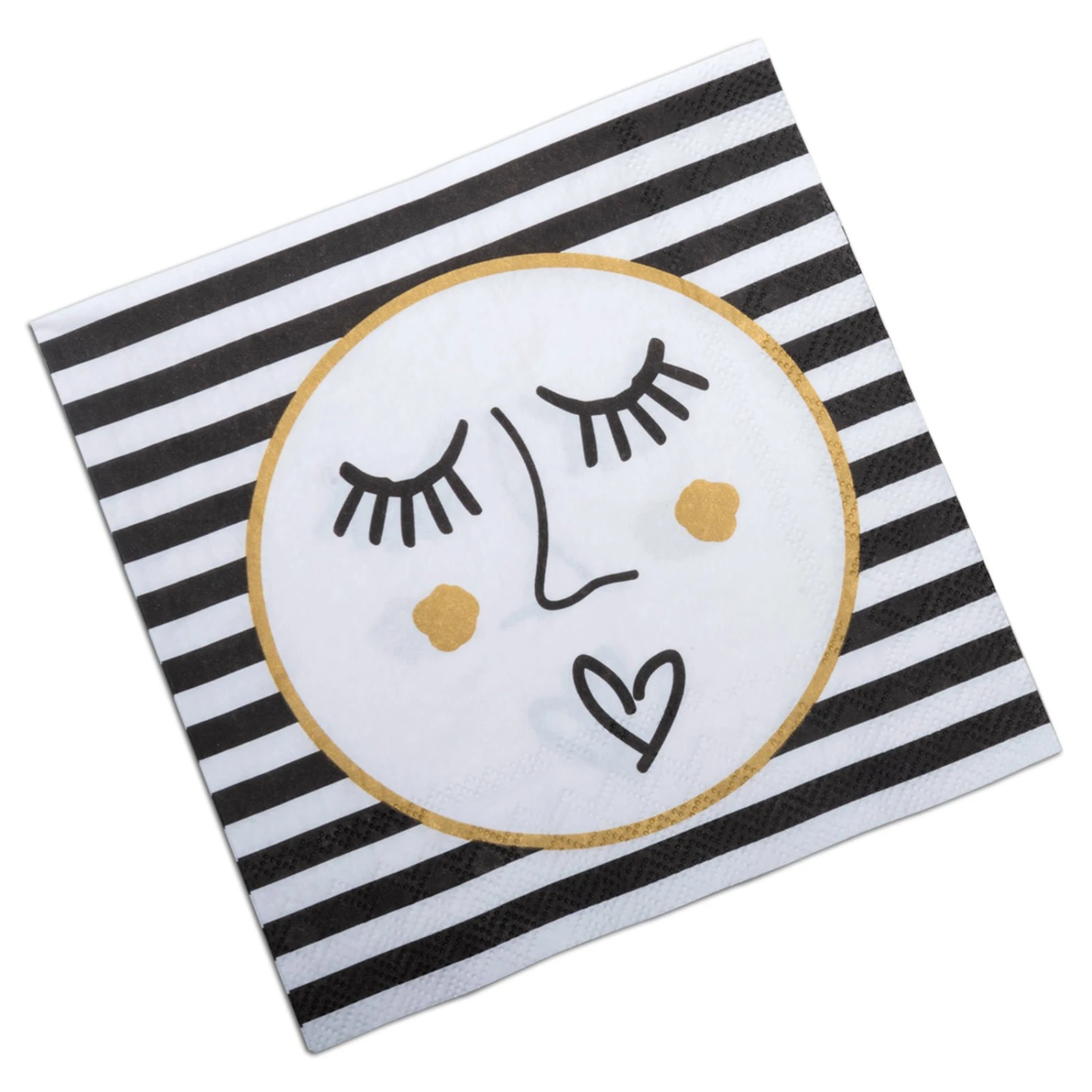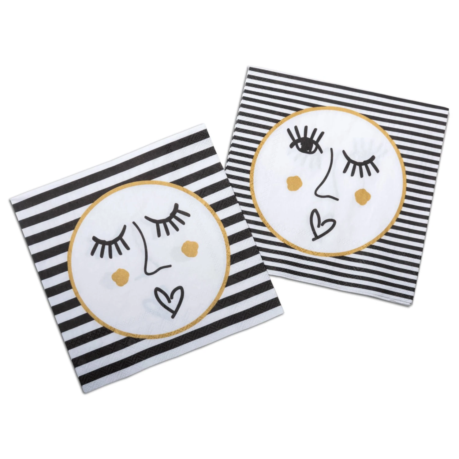 Ein bisschen Glamour am Essenstisch ist mit diesen Servietten ganz einfach. Sie sind in einer dezenten schwarz-weißen Farbgebung gehalten, die jedoch modern kombiniert wurde. Die Gesichter und die kleinen goldenen Highlights machen diese Servietten aber zu einem besonderen Hingucker.