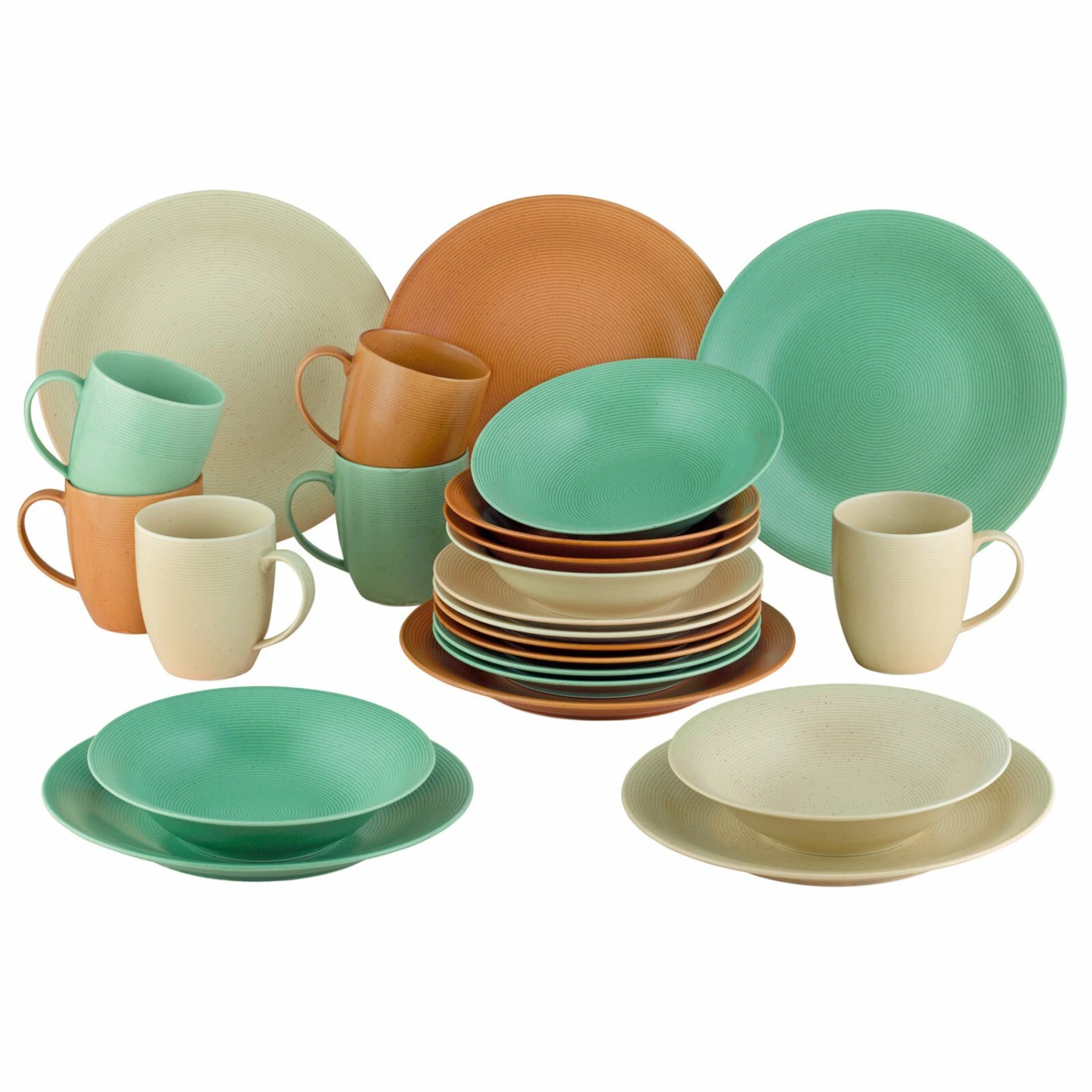 Haben Sie genug von langweiligem Geschirr? Dieses Set bringt mehr Farbe auf den Tisch. Durch die bunte Mischung und das matte Design setzen Sie Akzente. Das Geschirrset besteht aus sechs Kaffeebechern, sechs Speisetellern, sechs Suppentellern und sechs Desserttellern. Verbunden mit Ihren Liebsten sind somit gesellige und unvergessliche Momente vorprogrammiert.