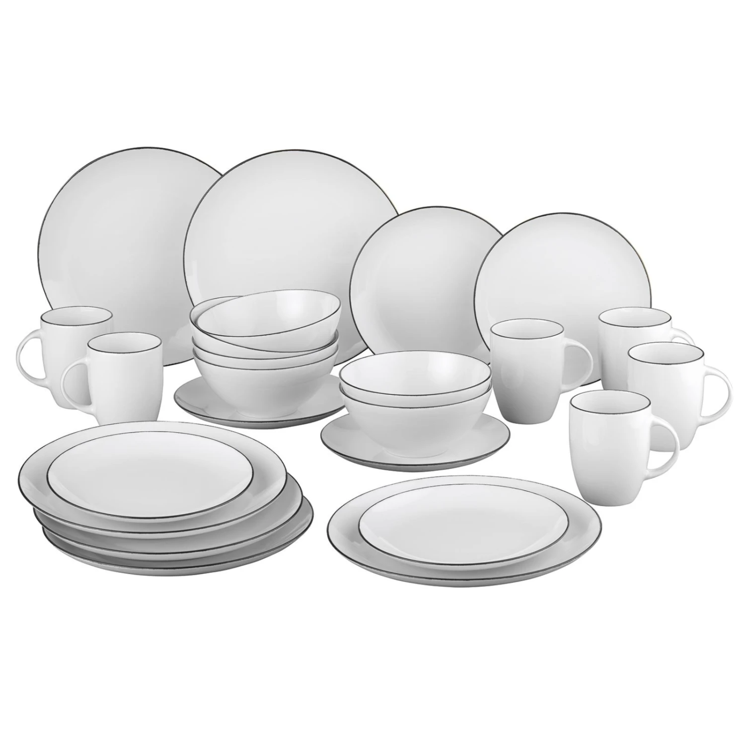 24-teiliges Kombiservice – weiß – schwarzer Rand