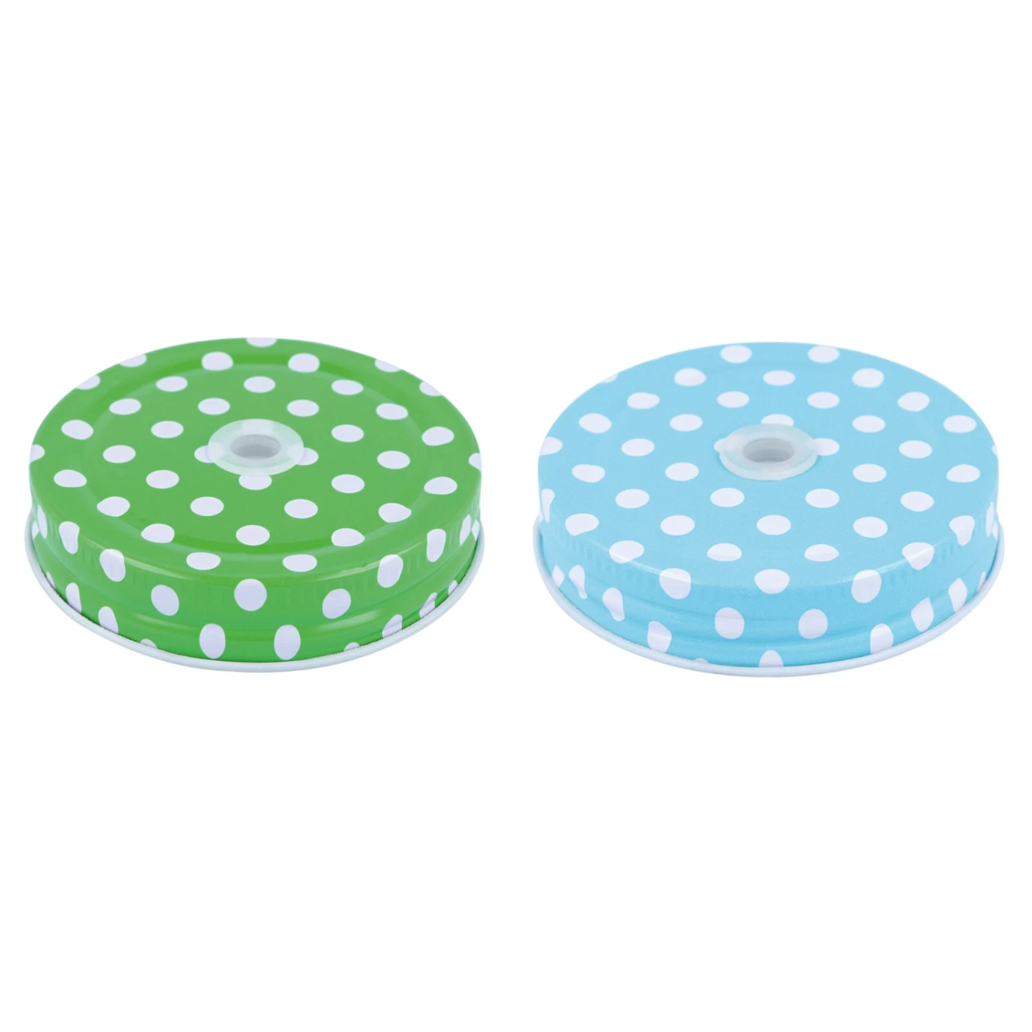Mit diesen 2er-Set Deckeln erhalten Sie die passenden Deckel für Ihre Trinkgläser. Sie sind mit einem Loch für Trinkhalme ausgestattet. Entweder Sie erhalten Grün und Blau oder Rot und Gelb.