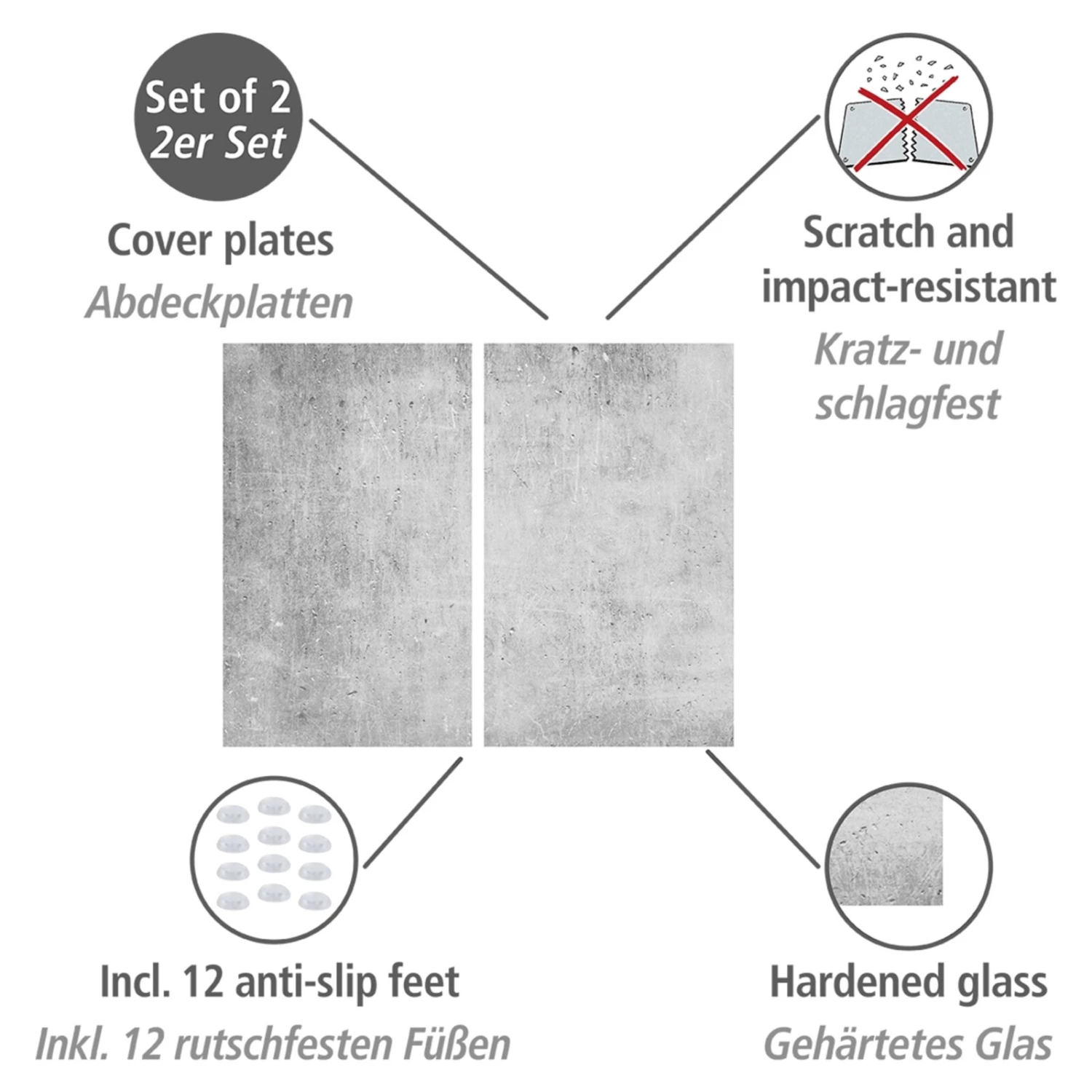 Schlichtes und gleichzeitig modernes Beton-Design erwartet dich mit diesen Glasabdeckplatten! Die Abdeckplatten sorgen für den gewissen dekorativen Touch in deiner Küche und weisen zudem einen hohe Funktionalität auf. Sie schützen das Kochfeld optimal, Töpfe und Pfannen können einfach abgestellt werden oder sie erweitern einfach die Arbeitsfläche. Da die Herdabdeckplatten aus Glas sind, sind sie besonders einfach zu reinigen und werden hygienischen Ansprüchen gerecht.