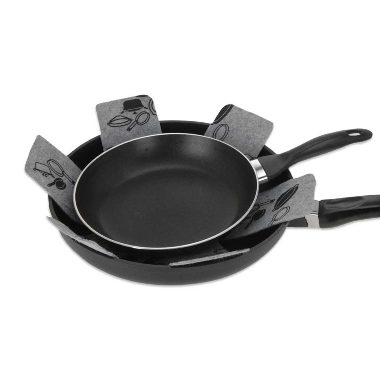 Mit diesem praktischen Pfannenschutz aus Filz können Sie Ihre Pfannen und Töpfe gefahrlos und platzsparend ineinander stapeln ohne dass Sie verkratzen. Die weichen Unterlagen haben einen Durchmesser von ca. 38 cm und schützen die empfindlichen Antihaft-Beschichtungen ihres Küchenzubehörs.