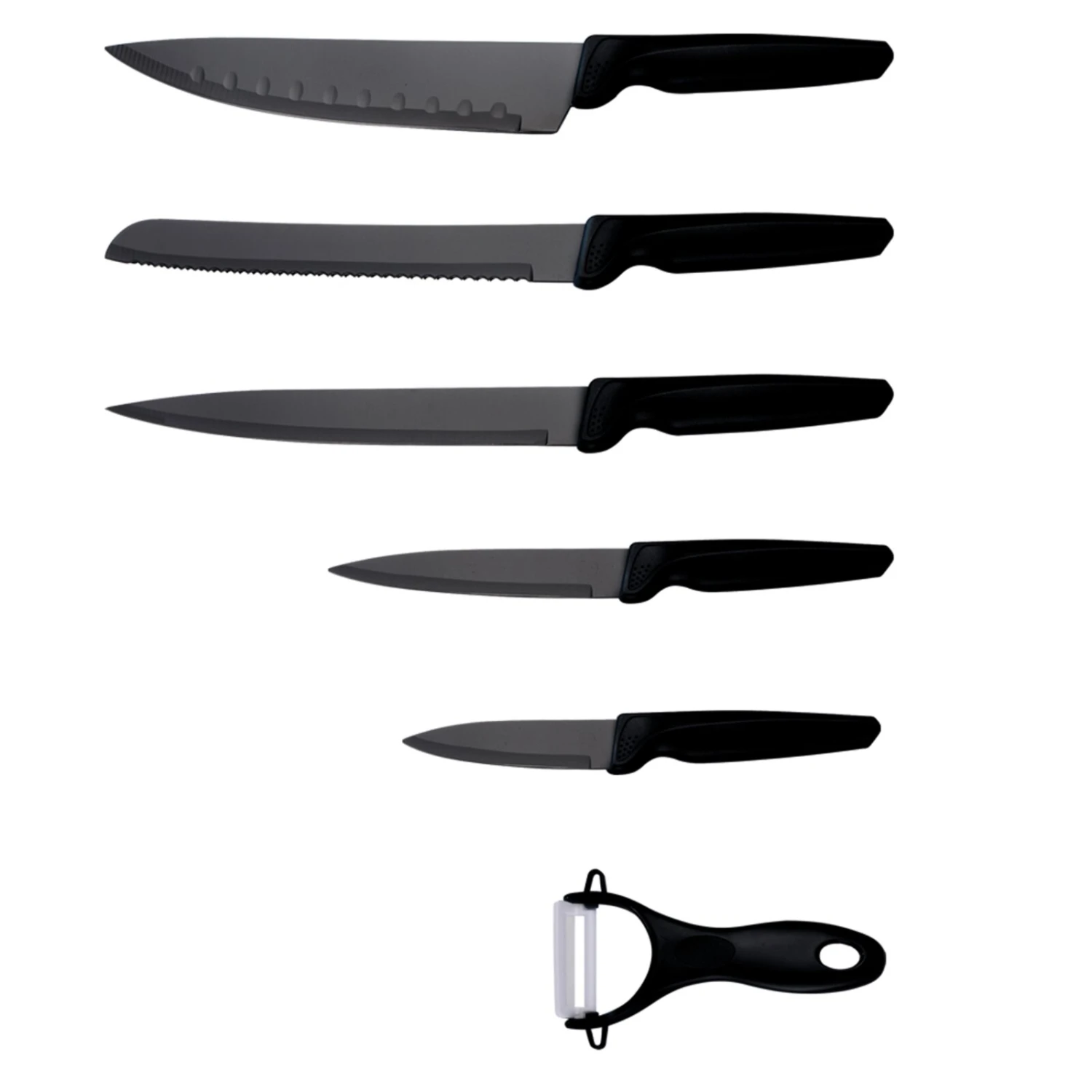 6-teiliges Messerset – schwarz – Edelstahl – mit Schäler