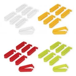 Verschließen Sie Ihre Tüten und Beutel transportsicher und dicht für die Aufbewahrung in der Tiefkühltruhe. So halten Sie Ihre Lebensmittel lange frisch und sicher vor äußeren Einwirkungen, Tieren und Gerüchen. Das Set enthält 7 Kunststoffklammern mit einer Breite von ca. 6 cm. Die Klammern sind farblich sortiert, eine Farbwahl ist online nicht möglich.