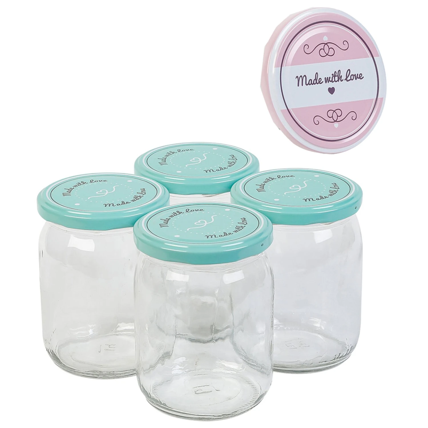 Die vier wiederverwendbaren Einmachgläser überzeugen nicht nur aufgrund der Nachhaltigkeit, sondern auch durch die dekorative Optik. Füllen Sie ihre Marmeladen, Konfitüren oder Kompotte ab, so dass sie entsprechend lange Freude an ihnen haben.