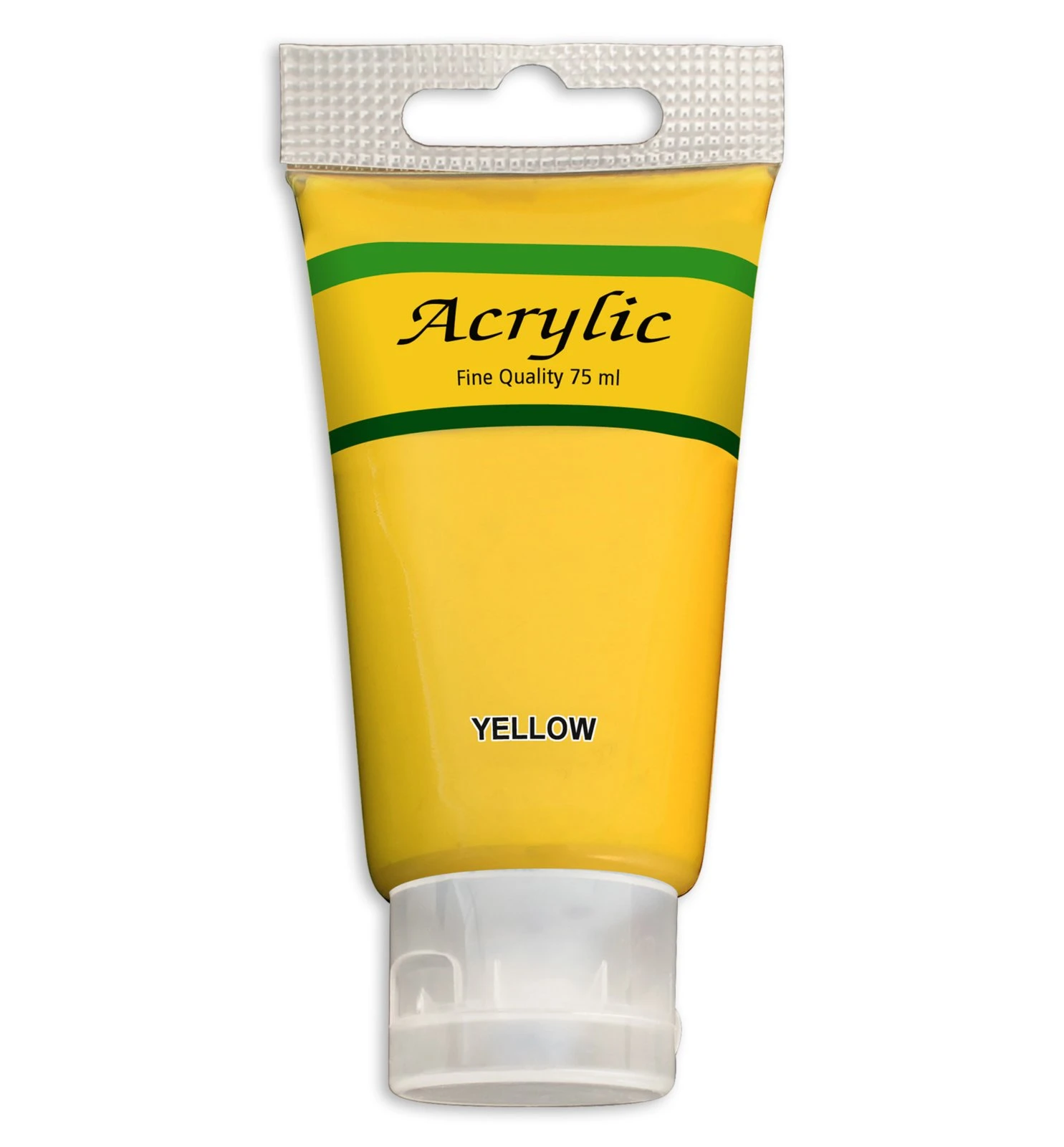Feine Acrylfarbe in Gelb. Diese Farbe ist in einer praktischen 75 ml Tube mit Klappverschluss, also keinen losen Schraubverluss mehr und keine Kleckerei.