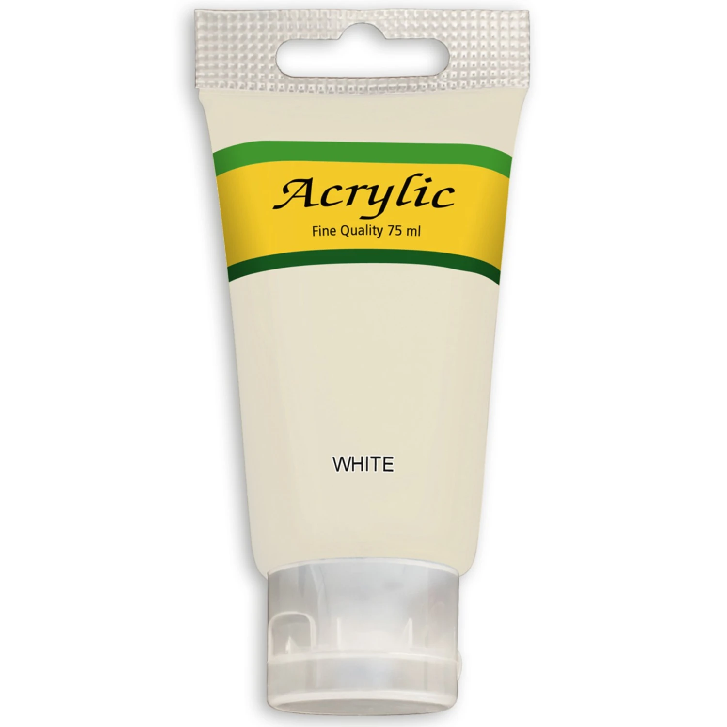 Feine Acrylfarbe in Weiß. Diese Farbe ist in einer praktischen 75 ml Tube mit Klappverschluss, also keinen losen Schraubverluss mehr und keine Kleckerei.