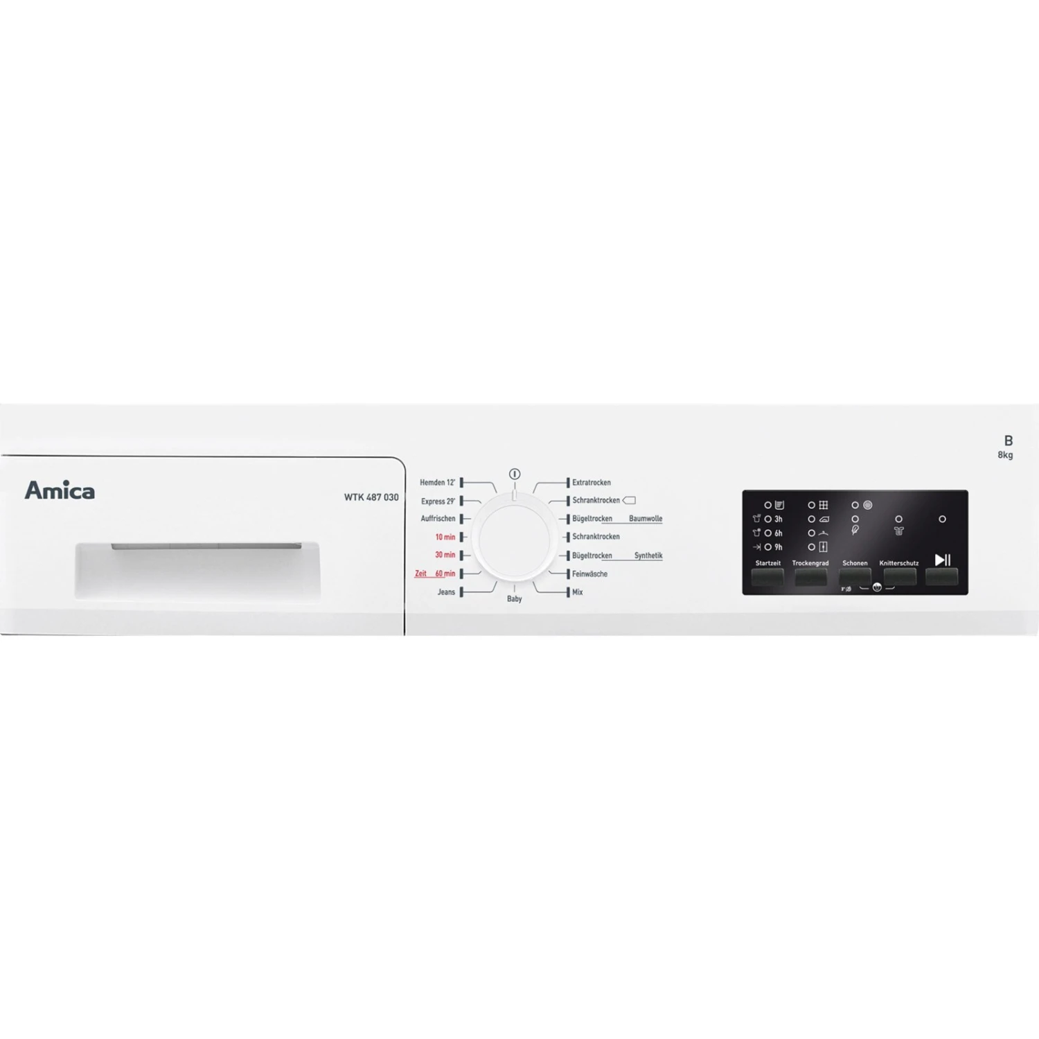 Der AMICA Kondenstrockner WTK 487 030 liefert ein gutes Trocknungsergebnis mit Hilfe von 15 unterschiedlichen Programmen. Durch die LED-Innenbeleuchtung haben Sie Ihre Wäsche stets im Blick. Für einen hohen Komfort sorgen die Startzeitvorwahl und die Restanzeige.
