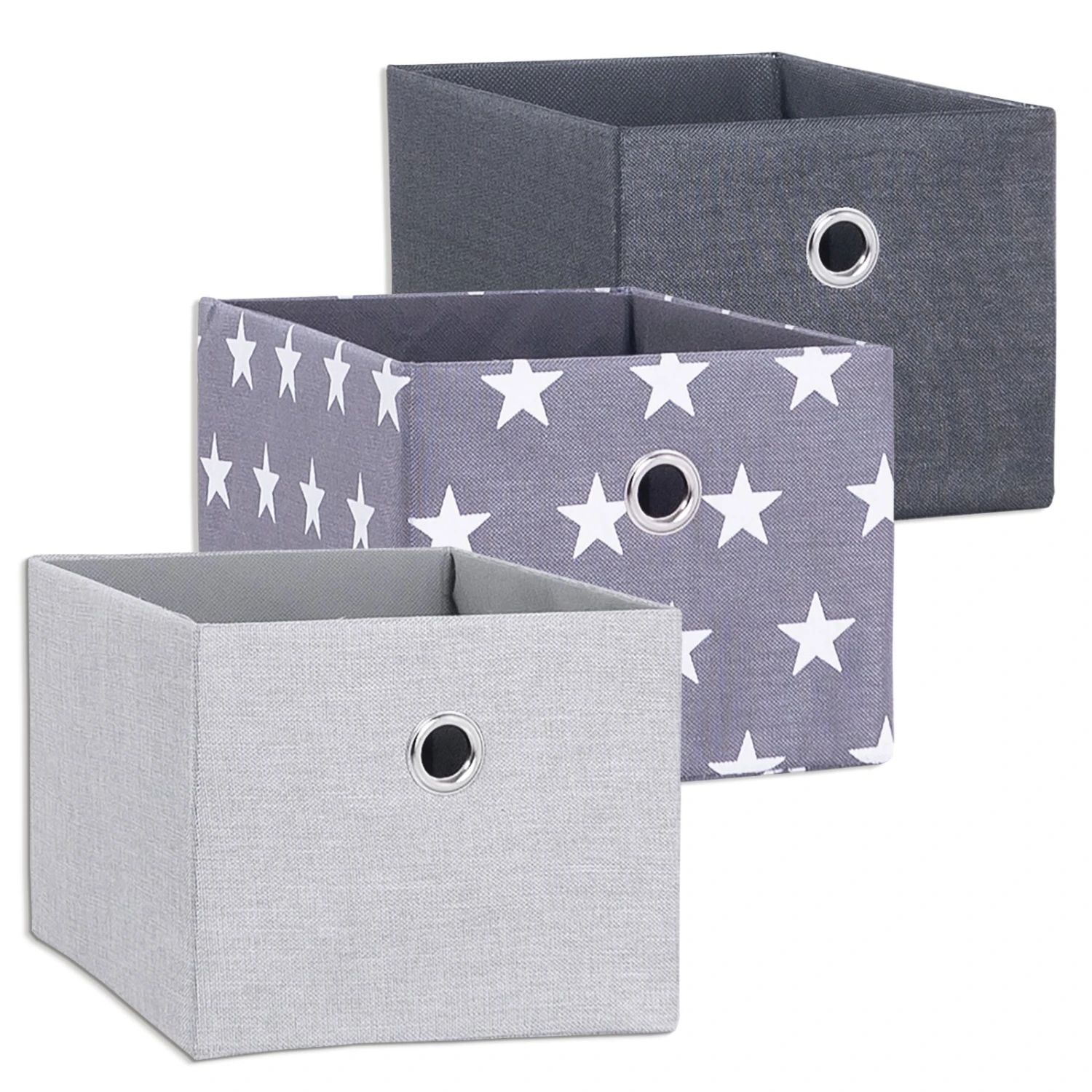 Aufbewahrungsboxen sind die stylische Art, Ordnung in Ihrer Wohnung zu halten. Hier kann allerlei Krimskrams verstaut werden. Dabei sind die Boxen, dank des Bezugsstoffes aus Polyester, sehr robust und pflegeleicht.