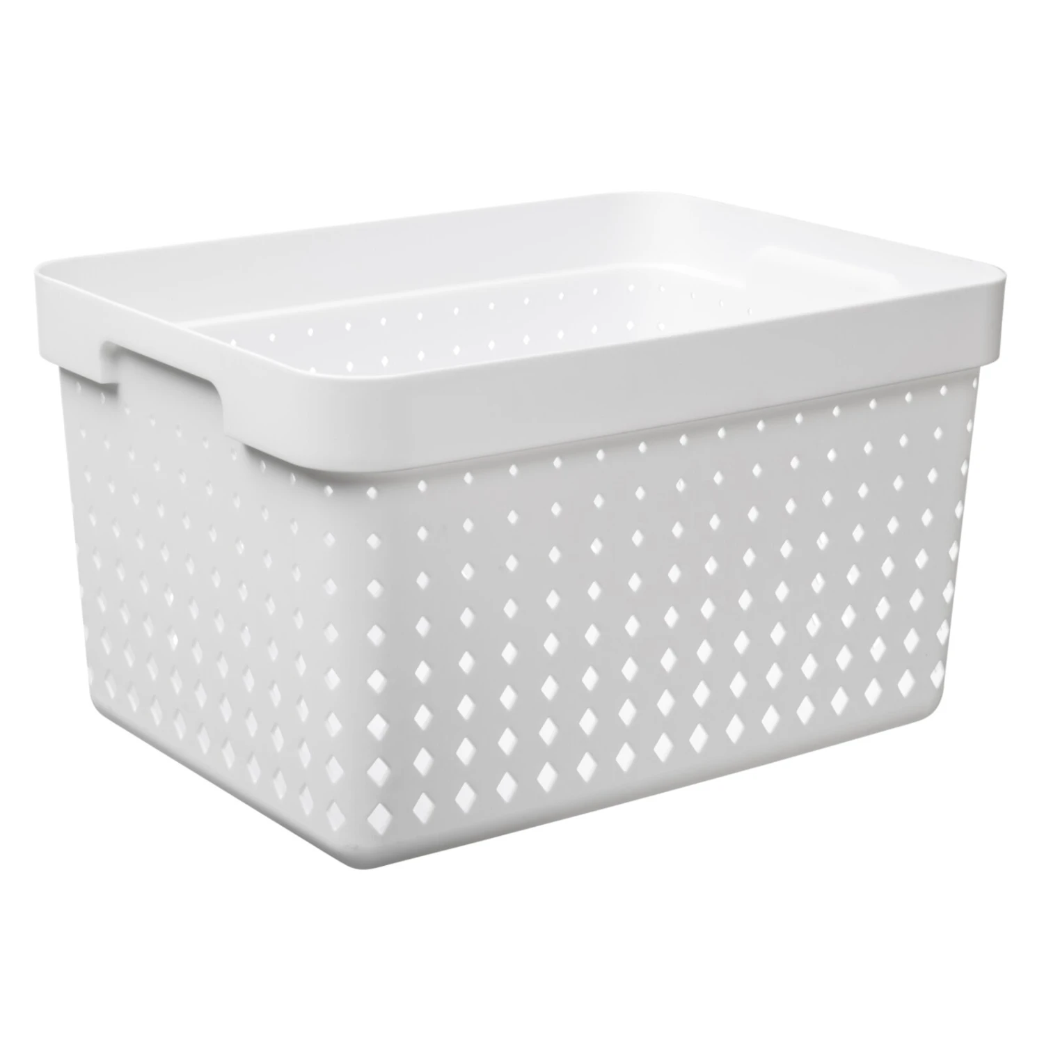 In diesem weißen Aufbewahrungskorb mit einem Fassungsvermögen von etwa 16 Liter können Sie in Ihren vier Wänden perfekt Ordnung halten. Egal ob im Badezimmer, in der Küche oder im Wohnzimmer den Korb können Sie überall verwenden.