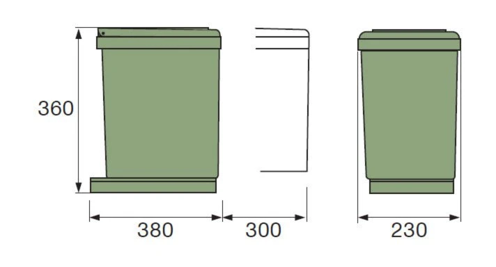 Der Einbau-Mülleimer bietet eine 2-fach Trennung des Abfalls mit 2 x 7,5 Liter Fassungsvermögen. Die Eimer sind in dezentem Grau gehalten. Das Modell wird am Boden des Unterschrankes montiert, sodass hierfür eine Mindestunterschrankbreite von 30 cm benötigt wird. Der Komplettdeckel ist teilweise klappbar.