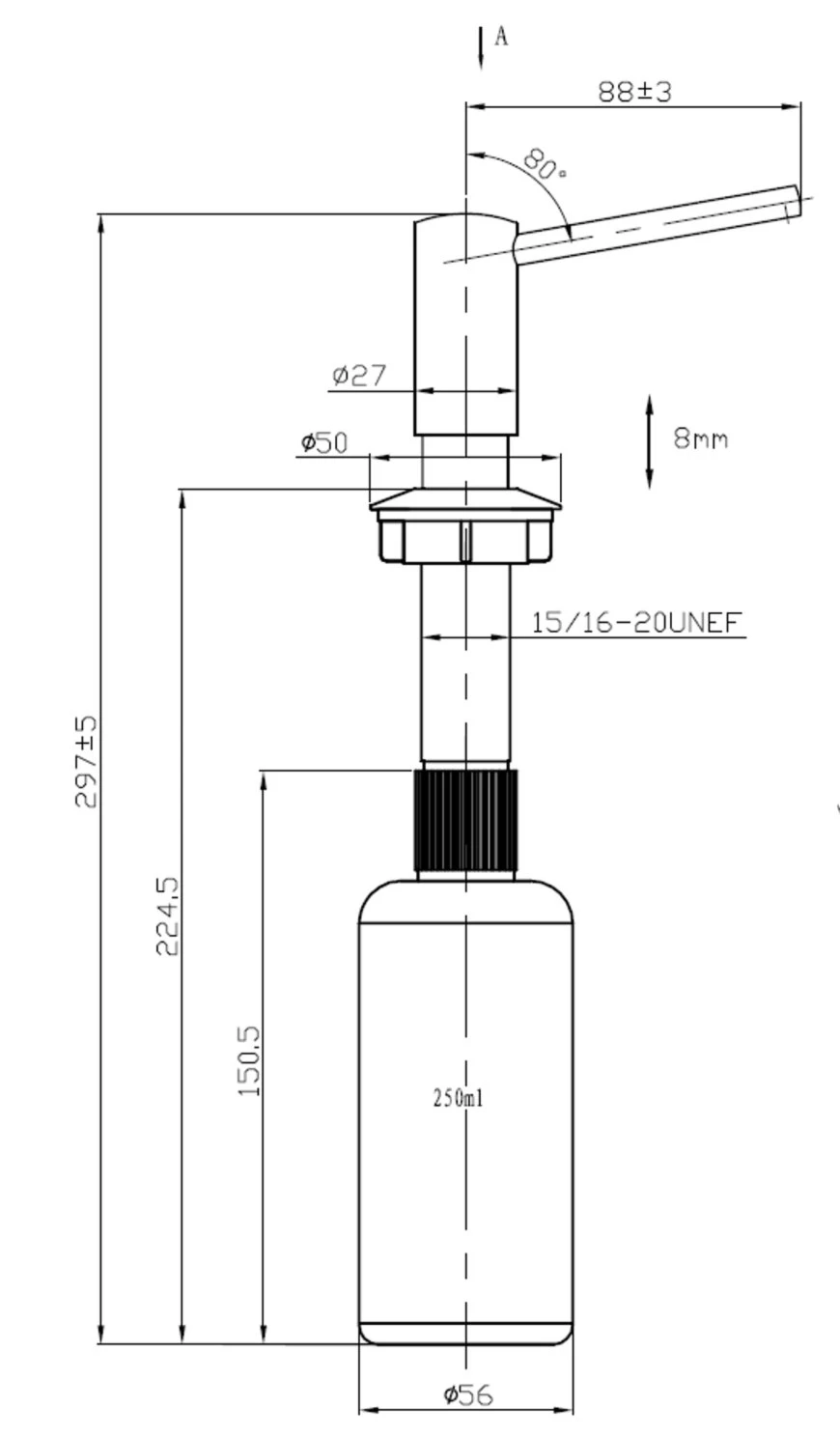 Nutzen Sie diesen praktischen Einbau-Seifenspender für Ihr Spülmittel oder für die Seife. Dieses tolle Utensil in Chrom lässt sich in die Arbeitsplatte oder auch in die Spüle einbauen und hat 250 ml Fassungsvermögen.
