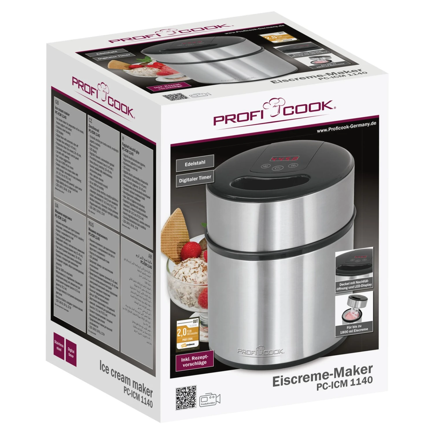 Die Eismaschine aus Edelstahl eignet sich für die Zubereitung von Eiscreme, Frozen Joghurt und Sorbet. Mit einem Fassungsvermögen von etwa 1,5 Liter und den sicheren gummierten Standfüßen ist diese Eismaschine ein echtes Highlight.