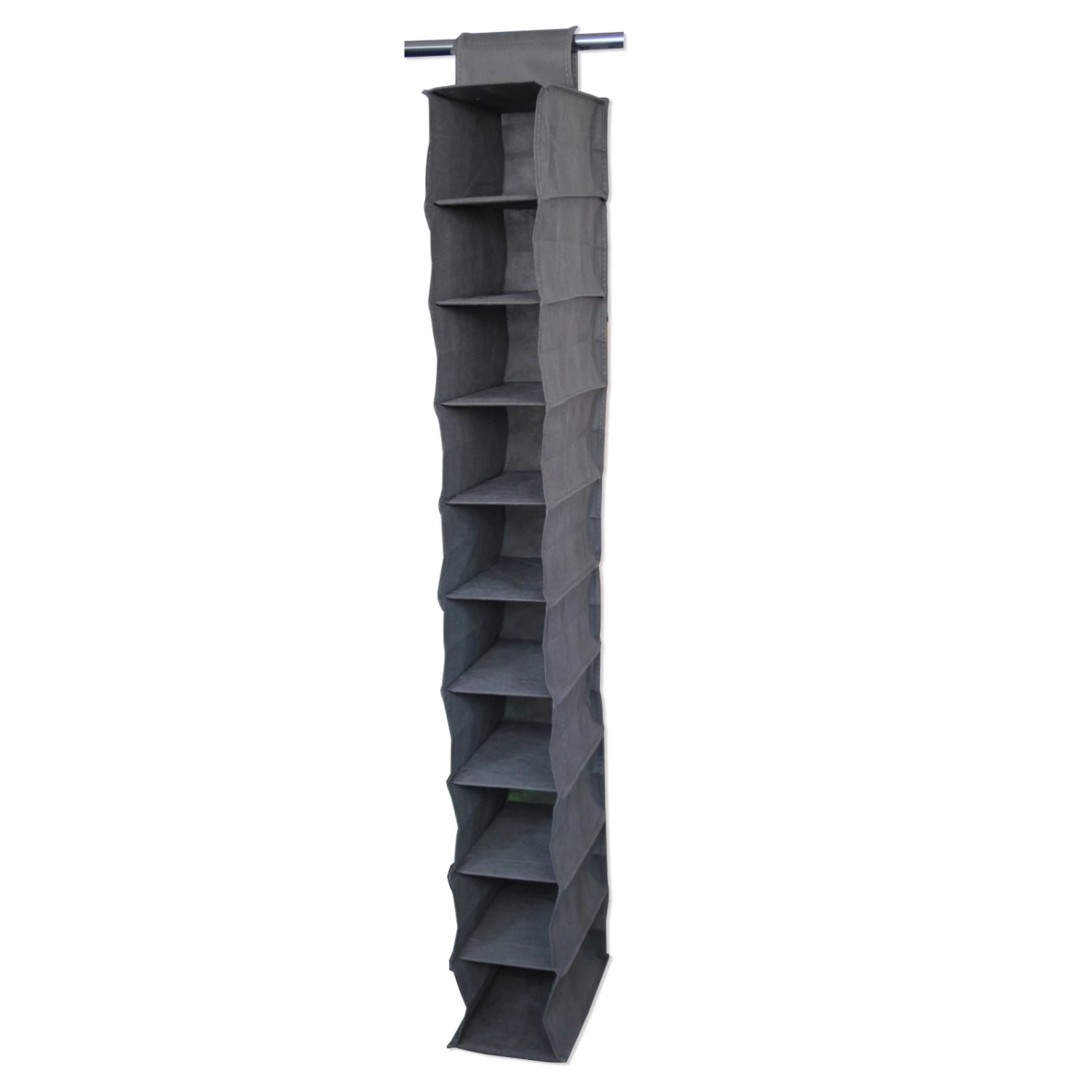 Mit diesem großen Faltregal schaffen Sie mehr Ordnung in Ihrem Kleiderschrank. Das Regal aus Faserstoff eignet sich mit seinen 10 Fächern perfekt um darin Socken zu ordnen oder T-Shirts nach Farben zu sortieren. Dank einer Aufhängeschlaufe lässt sich das blaue Regal einfach über eine Kleiderstange schieben.