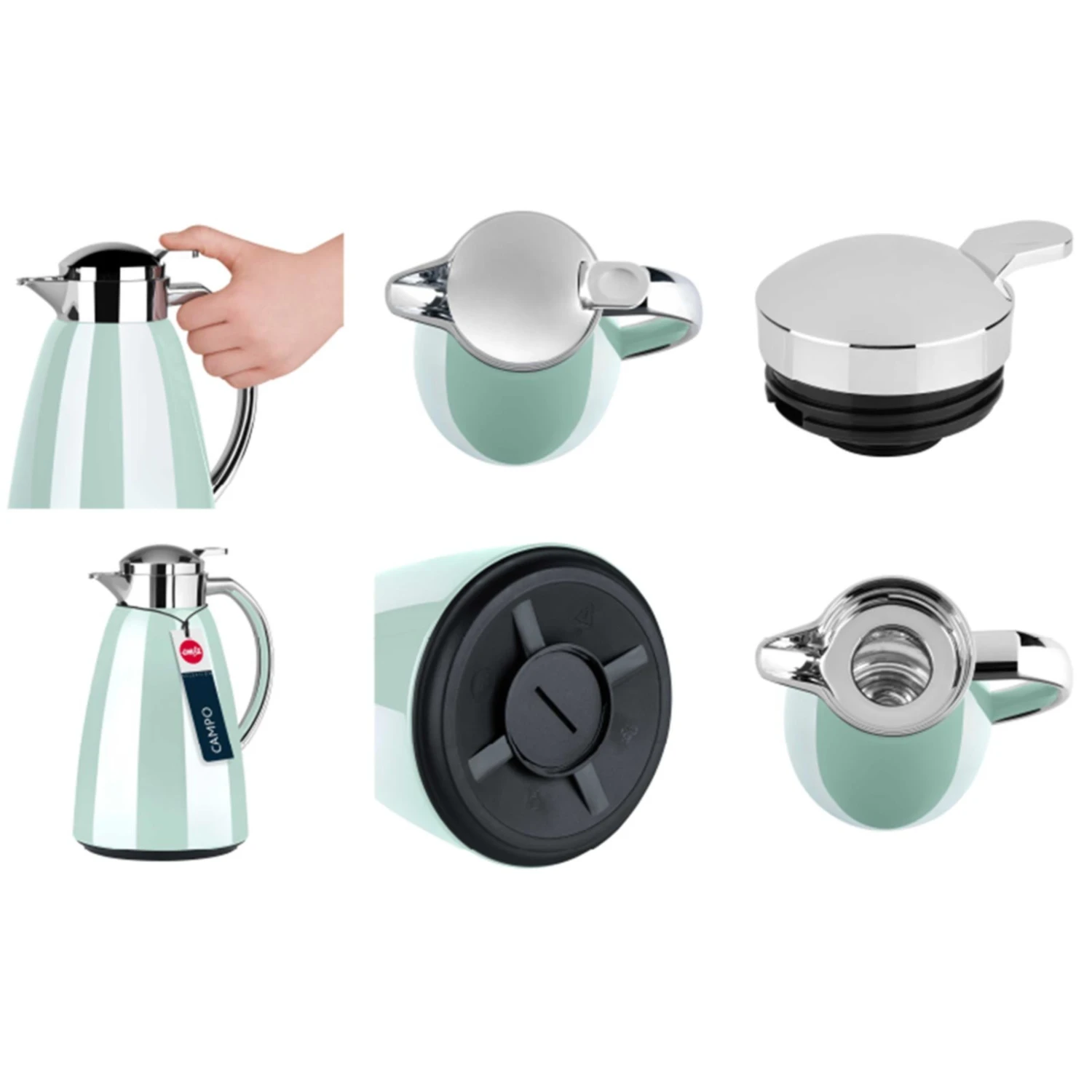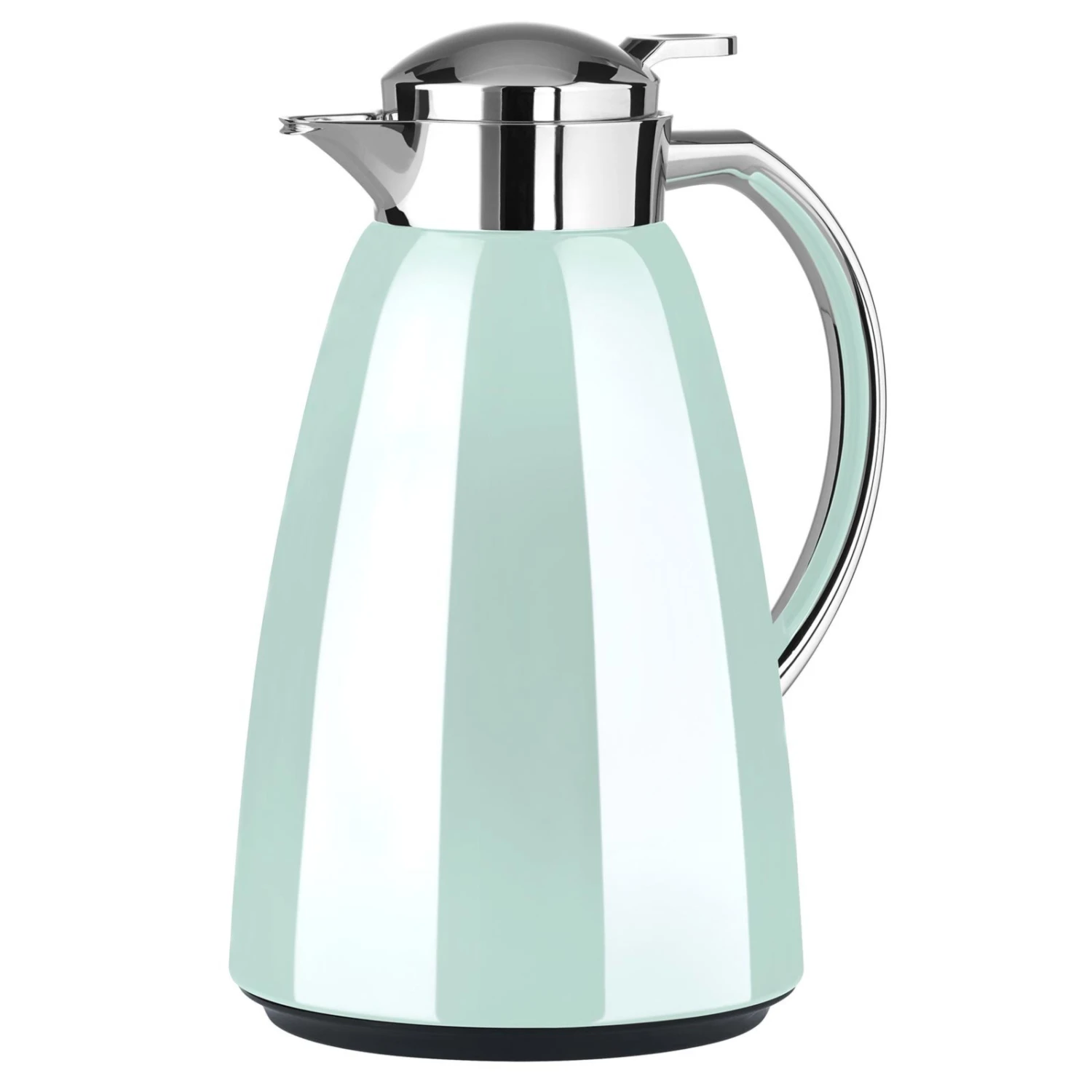 Mit dieser eleganten Isolierkanne in Pastellmint können Sie sowohl warme, als auch kalte Getränke über viele Stunden isolieren. Der Quick-Tip-Verschluss gewährt Ihnen eine sehr leichte Handhabung und hält die Isolierkanne zu 100% dicht.