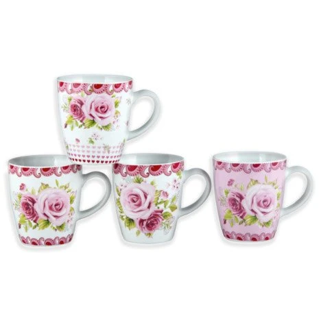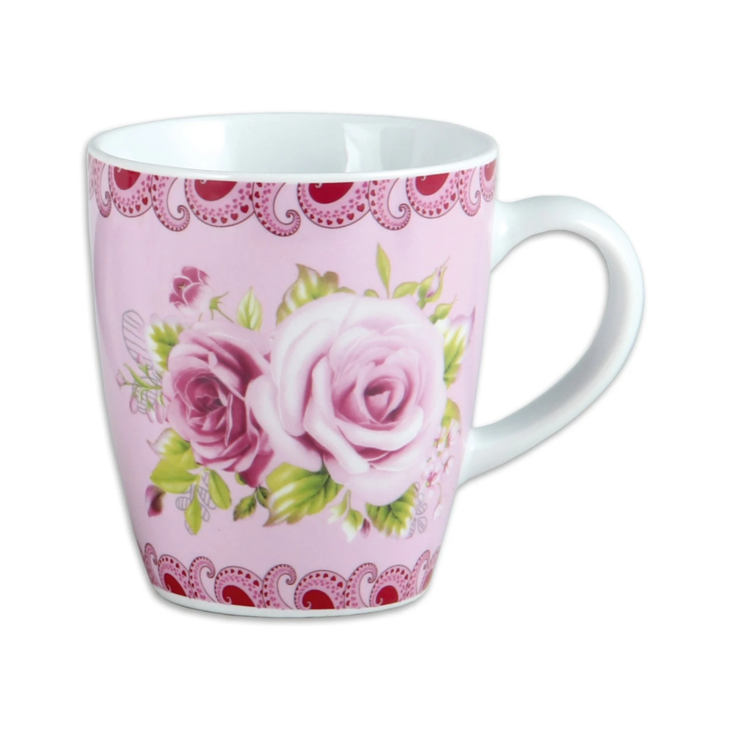 Verspielte Rosendesigns befinden sich auf diesen schönen Kaffeebechern. Die Porzellantassen haben ein Fassungsvermögen von ca. 315 ml.