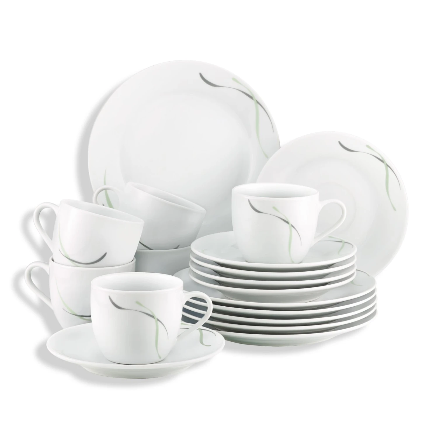 18-teiliges Kaffeeservice mit Liniendekor in Grau-Grün