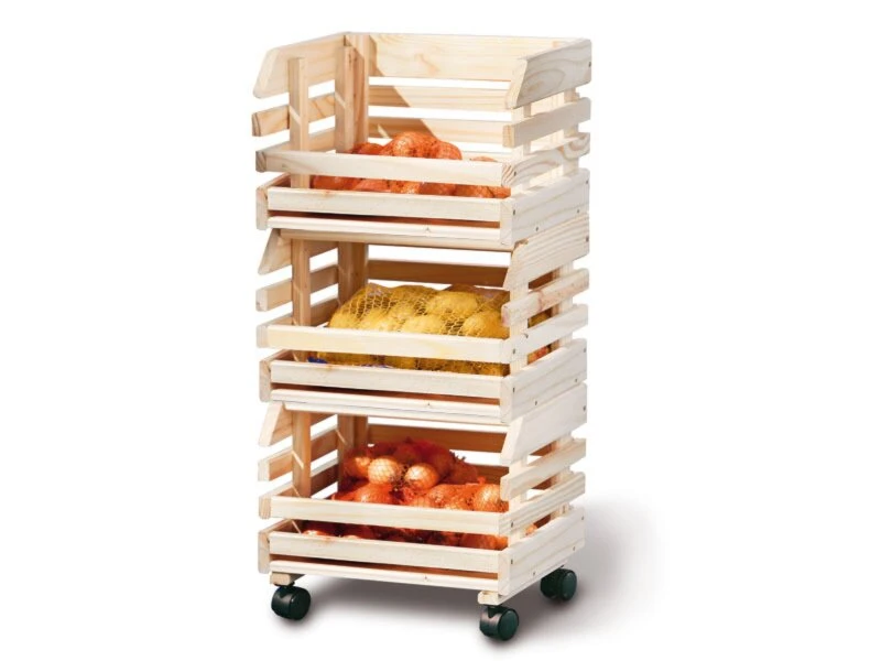 Zum Aufbewahren von Kartofflen, Äpfel und Co. ist dieser Küchenwagen geradezu perfekt und bietet in drei Körben reichlich Stauraummöglichkeiten. Er wurde aus massivem Holz gefertigt und Sie können ihn mit Leichtigkeit in einer anderen Position rollen.