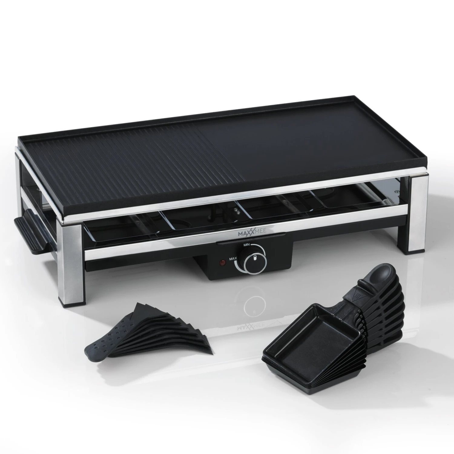MAXXMEE Raclette-Grill – schwarz-silber – Edelstahl – 57 cm hoch