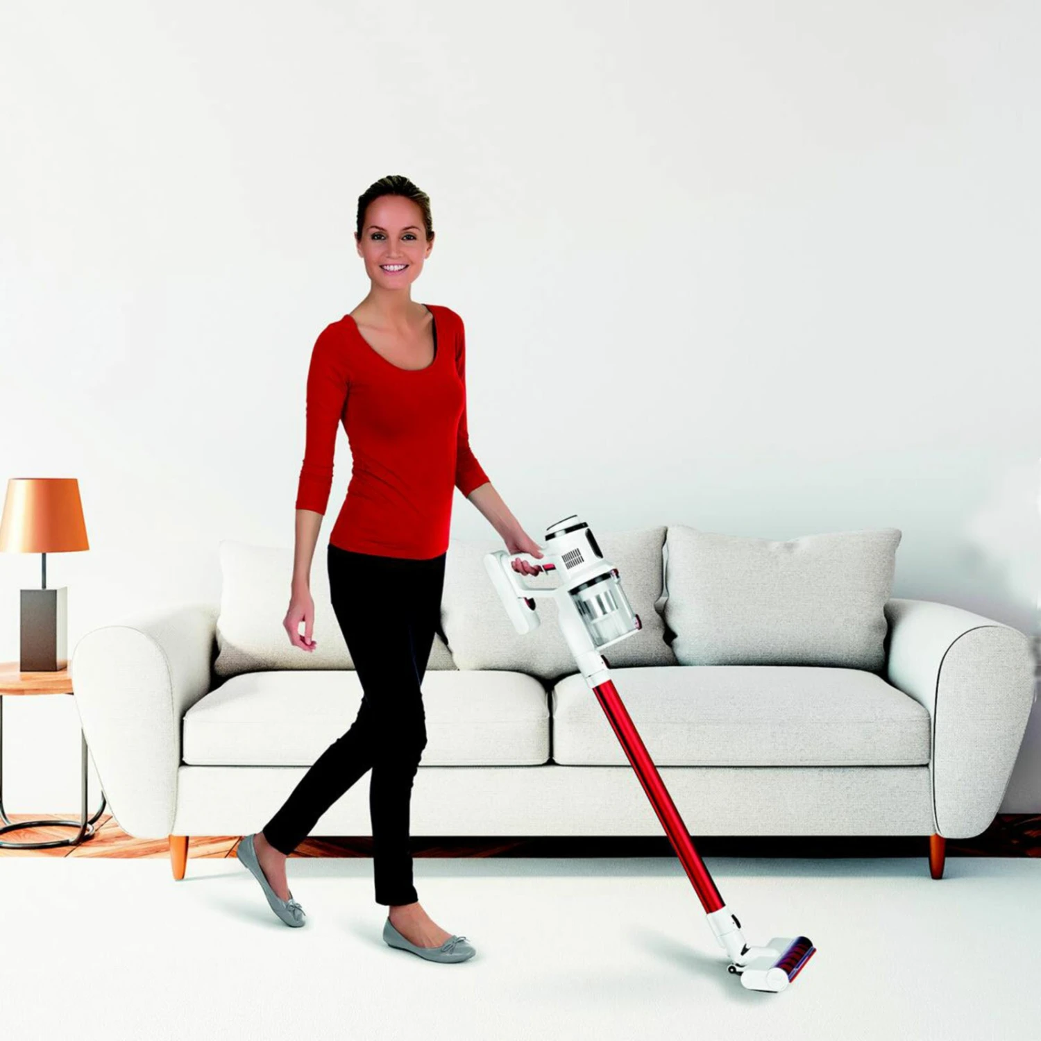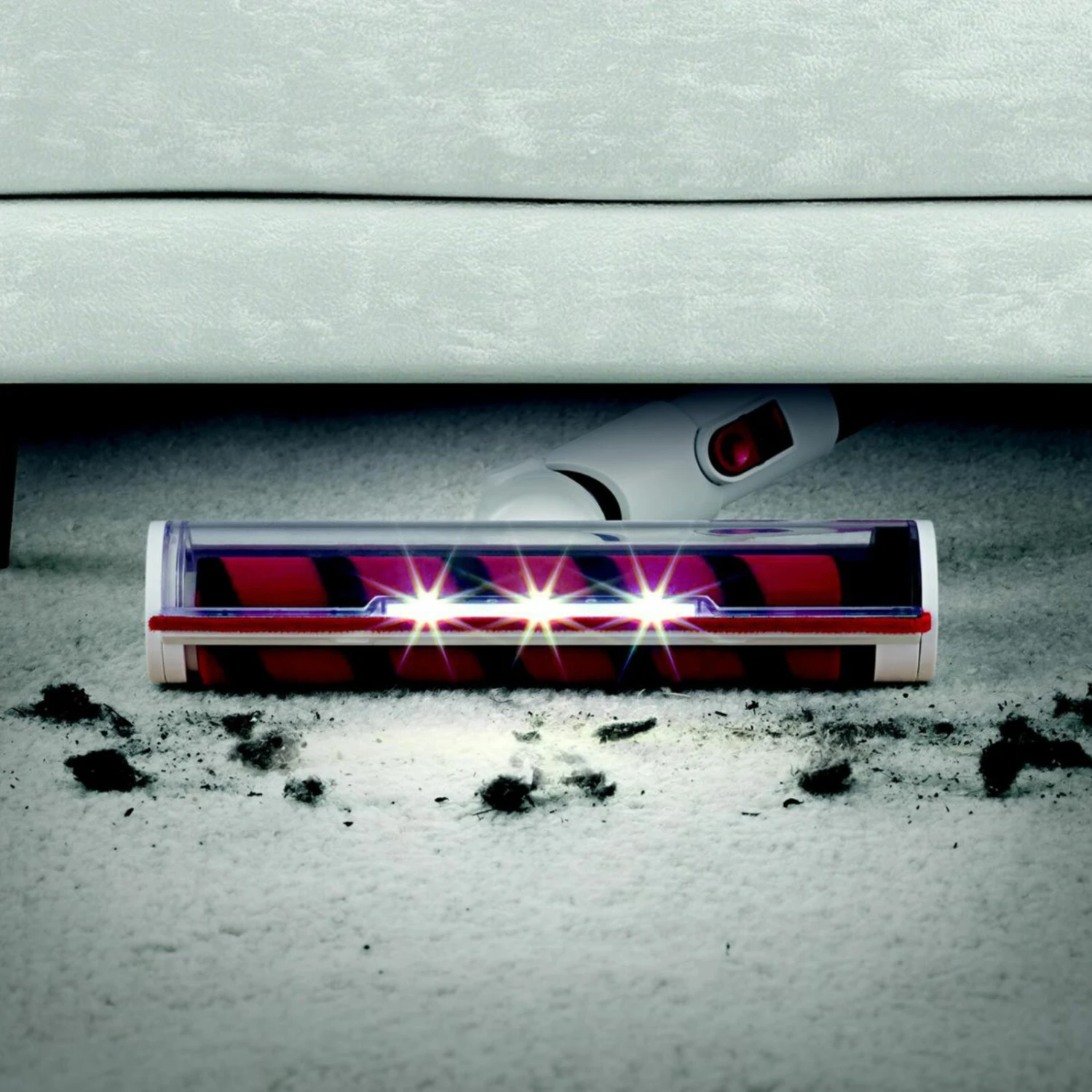Enfernen Sie Schmutz ab sofort gleichzeitig mit Power und Köpfchen. Den beutel- und kabellosen Staubsauger können Sie sowohl als Hand-, aber auch als Bodenstaubsauger einsetzen. Das kompakte, flexible Gerät verwandelt sich kinderleicht mit dem stabilen Verlängerungsrohr zum Bodenstaubsauger. Dazu kommt noch seine smarte Sonderausstattung: Beim Reinigen erkennt der Staubsauger selbständig den Verschmutzunsgrad und ändert die Saugleistung entsprechend automatisch – von moderat bis extrastark. Auf dem Touch-Display sehen Sie den festgestellten Verschmutzungsgrad, die Akkuladung und den Modus. Mithilfe der Beleuchtung in der rotierenden Bodenbürste reinigen Sie auch dunkle Ecken wirksam. Ob Tastaturen, Möbel, Autositze, Teppichböden, Treppenstufen u.v.m. Tierhaare, Staub und Schmutz werden mit der angepassten Saugstärke wirksam entfernt. Die lange Akkulaufzeit von bis zu 60 Minuten hilft auch bei größeren Putzherausforderungen.