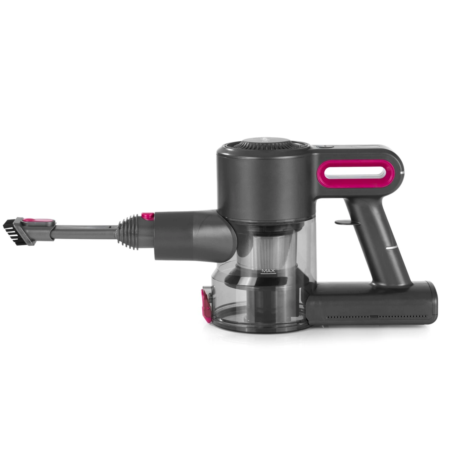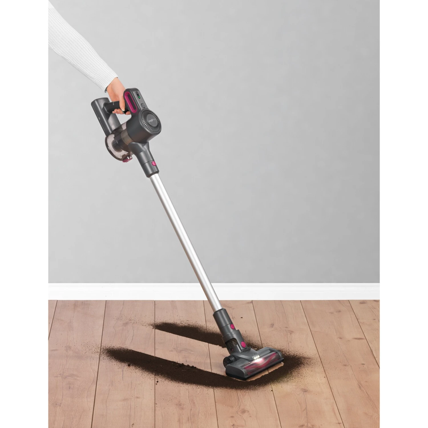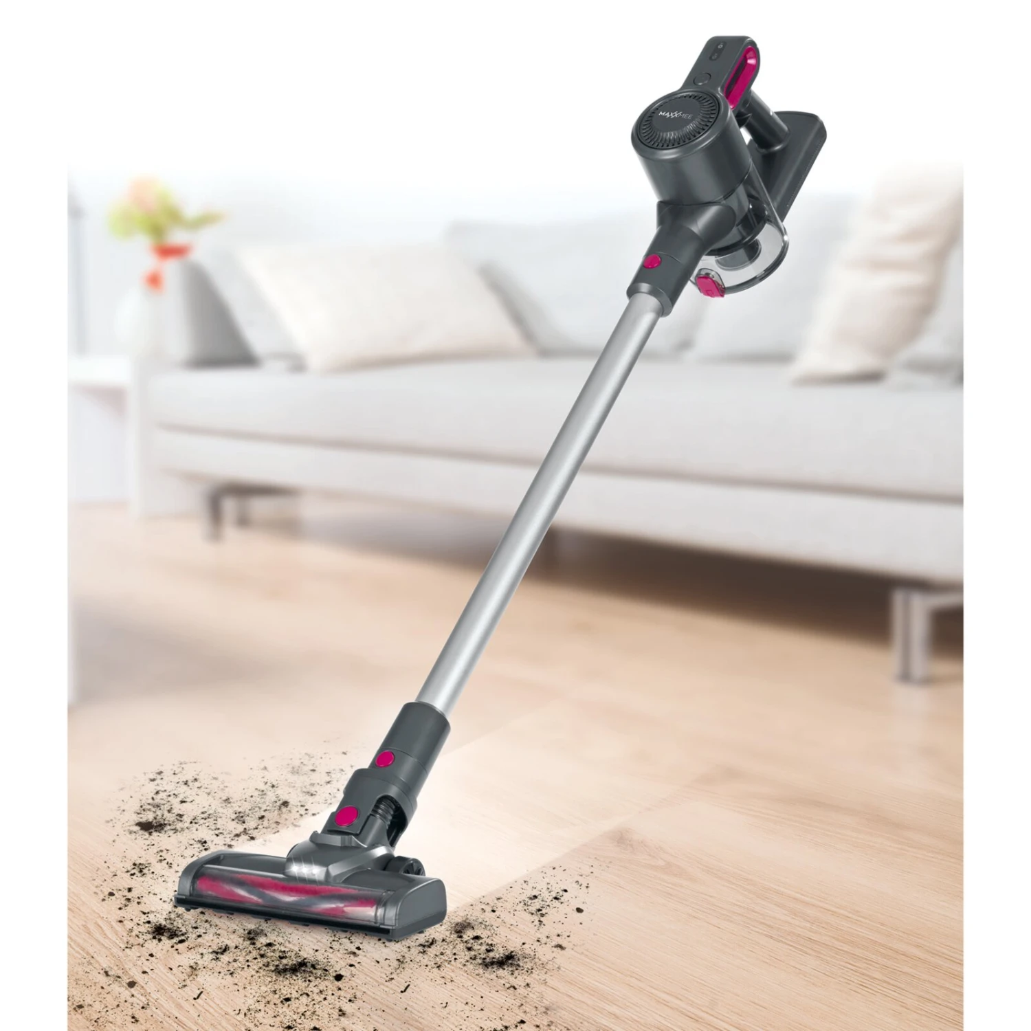 Mit diesem MAXXMEE Akku Zyklonstaubsauger 2026 können Sie Ihre Böden kabellos reinigen und kommen wirklich in jede Ecke. Die Bodendüse mit elektrisch rotierenden Borsten ist mit einer LED-Beleuchtung ausgestattet, damit Sie Staub leicht aufspüren und aufsaugen können. Der Staubsauger kann jedoch auch als Handsauger verwendet werden. Somit können Sie auch Ihre Autopolster oder Möbelstücke von Staub und Dreck befreien.