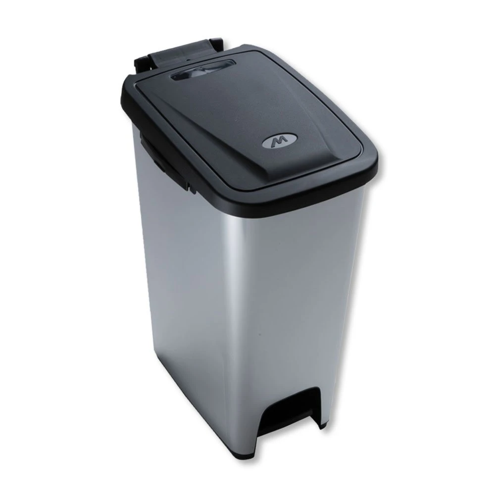 Der große Mülleimer mit praktischer Tretfunktion besteht aus Kunststoff und hat ein Fassungsvermögen von ca. 16 Litern. Der Müllbeutel lässt sich durch ein Klemmringsystem einfach befestigen und macht die Müllentsorgung zu einer sauberen Sache.