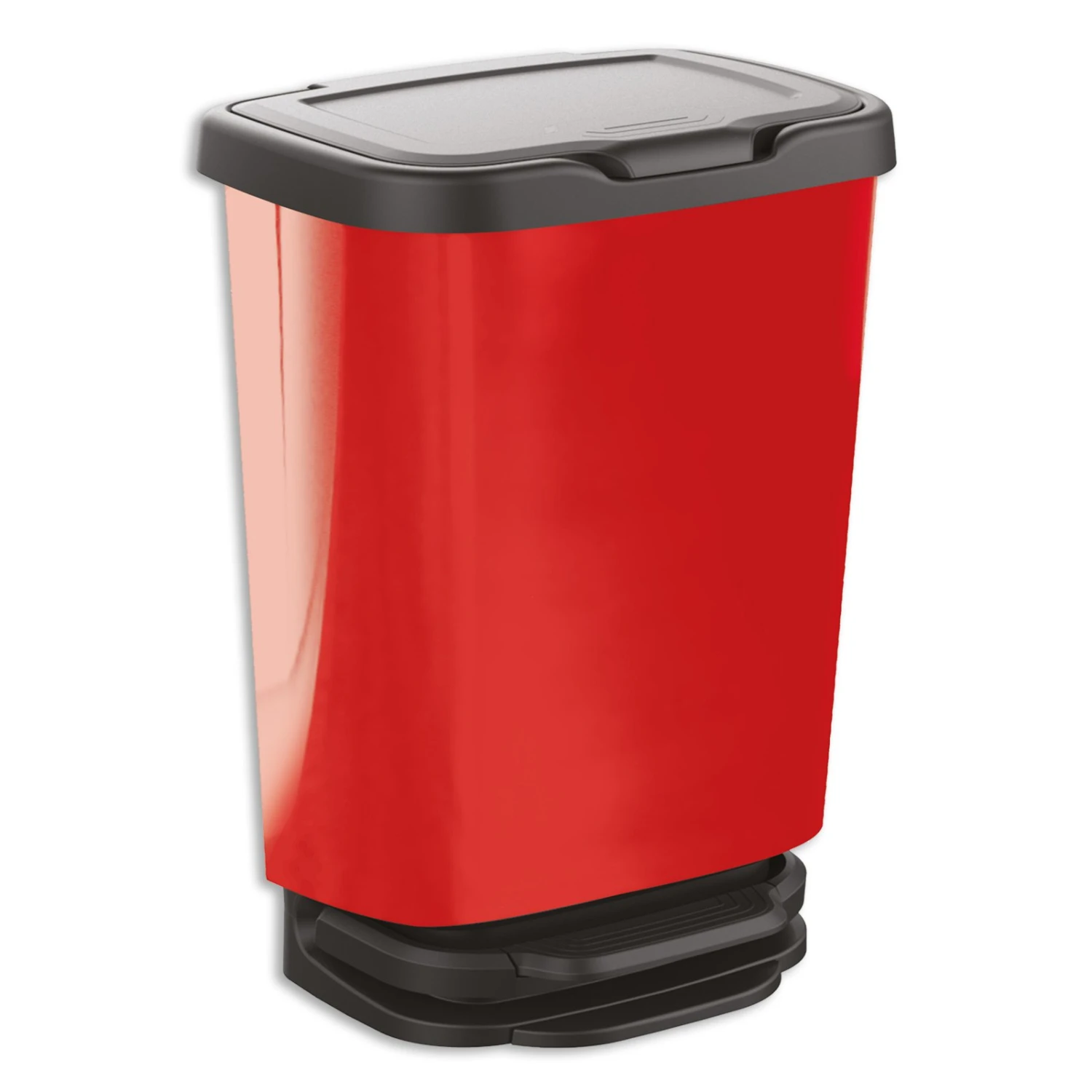 Dieser 20 Liter umfassende Mülleimer in schicker Metall-Optik lässt sich besonders praktisch mit dem Fuß öffnen. Der Deckel schliesst sich dabei sehr sanft und durch die Antirutschfüße rutscht er beim Befüllen nicht weg.