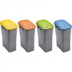 Dieser 20 Liter umfassende Mülleimer im schicken „Fresh Today“ Design lässt sich besonders praktisch mit dem Fuß öffnen. Der Deckel schließt sich dabei sehr sanft und durch die Antirutschfüße rutscht er beim Befüllen nicht weg.