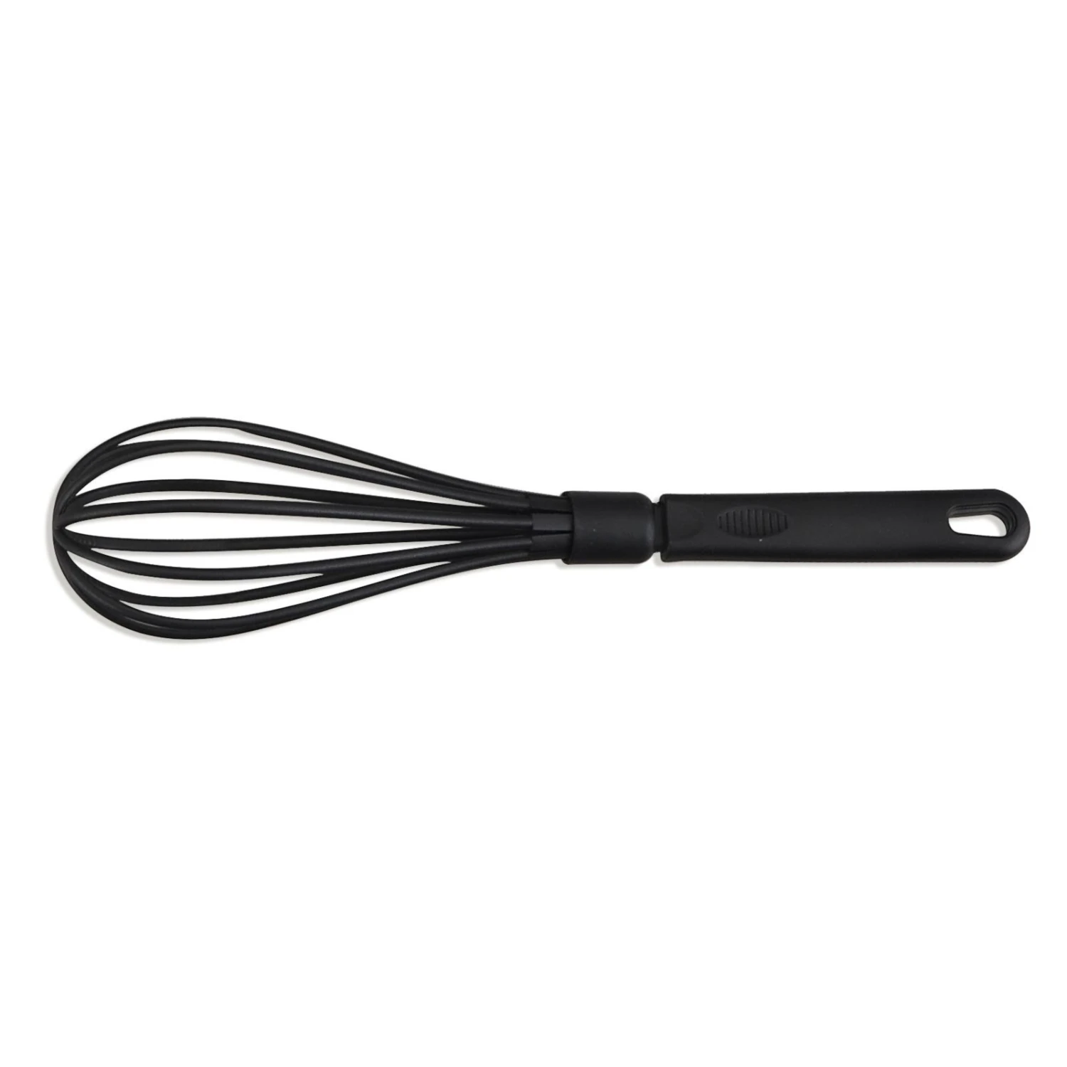 Praktischer Schneebesen aus Nylon. So sind kratzgeräusche beim Rühren passé. Außerdem ist das Material robust und spülmaschinenfest.