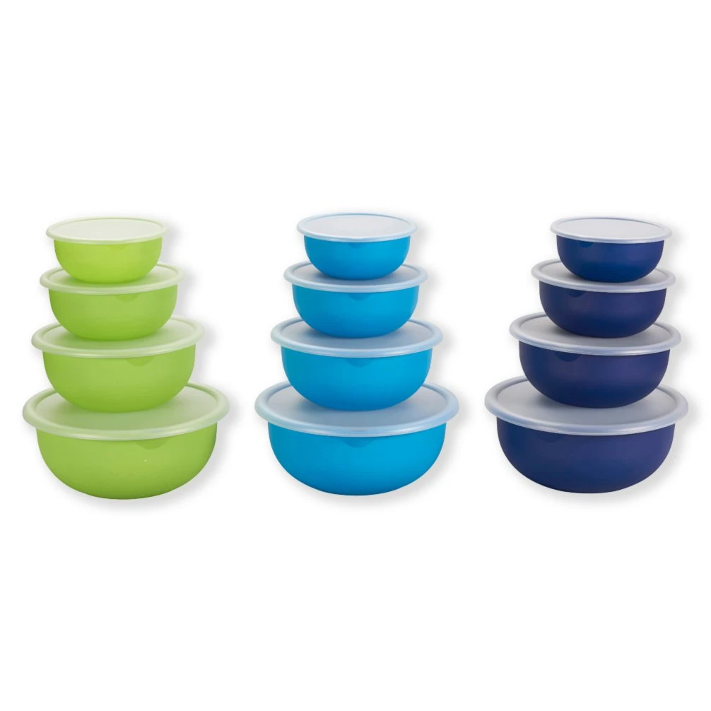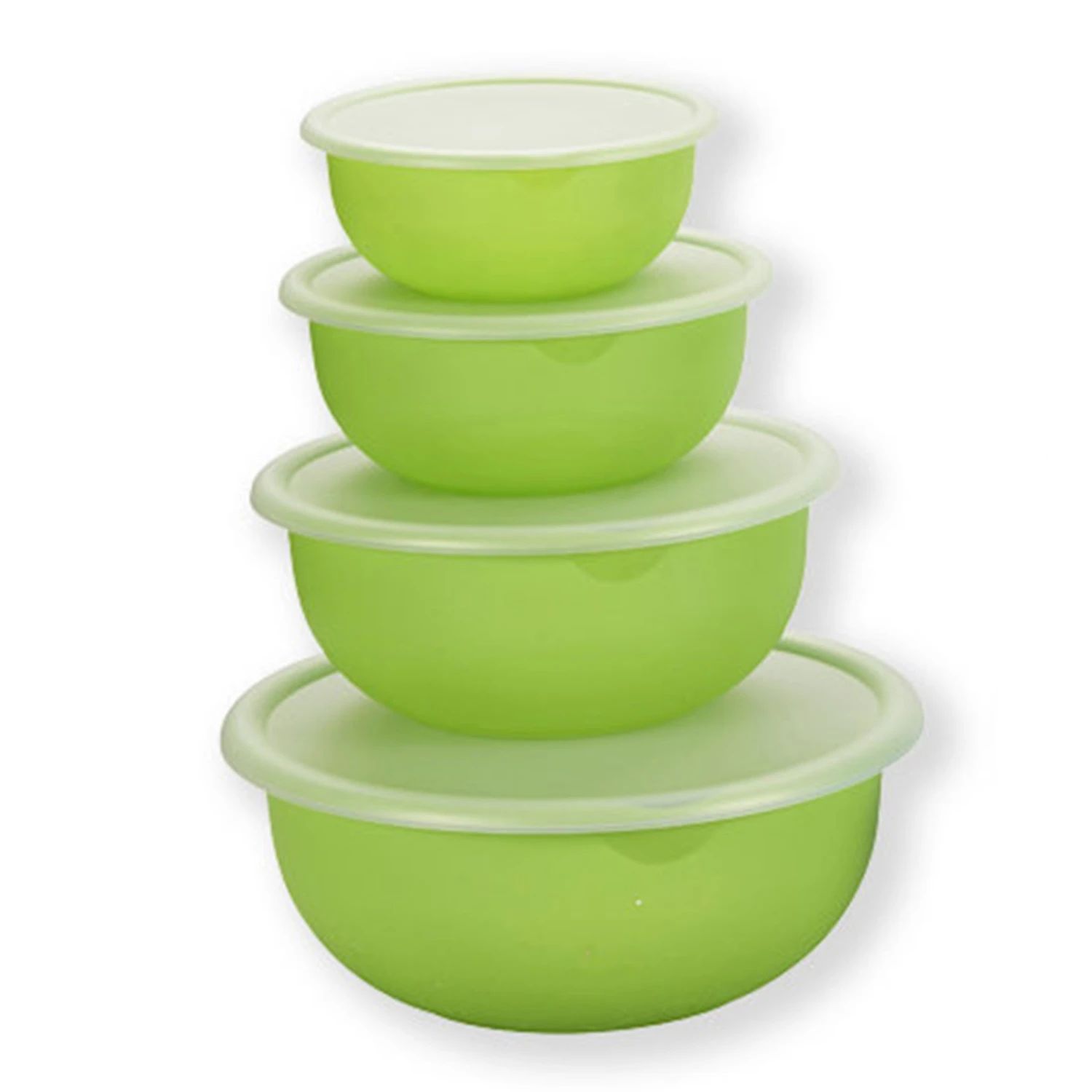 Dieses Set beinhaltet 4 unterschiedlich große Schüsseln. Der Durchmesser liegt bei den einzelnen Größen zwischen ca. 17 – 29 cm. Die Sets gibt es in den Farbvariationen blau, grün und karibik, eine Auswahl unter den einzelnen Setfarben ist nicht möglich. Passend zur Farbreihe enthält das Set für alle 4 Schüsseln den passenden Deckel, dieser schützt vor austretenden Gerüchen und äußeren Einwirkungen.