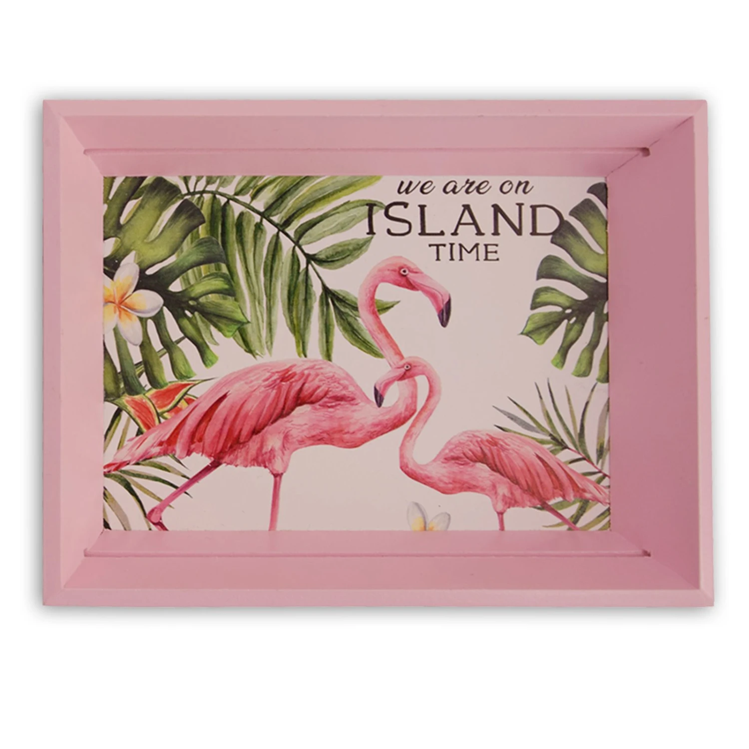 Egal, ob als Küchenhelfer oder als praktisches Grillzubehör, das Tablett hilft Ihnen dabei, mehrere Gegenstände auf einmal transportieren zu können. Das schöne Flamingo-Motiv versprüht ein sommerliches Feeling.