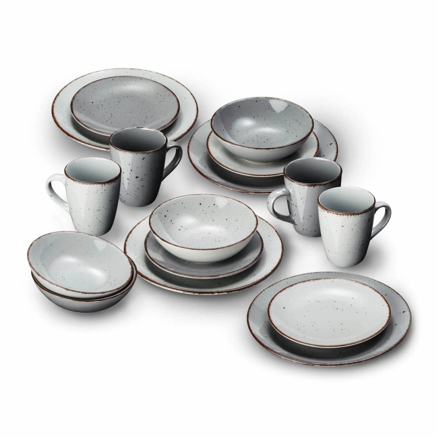 Das Tafelservice besteht aus Steingut und sorgt für eine angenehme Stimmung am Tisch – egal, ob zum Speisen oder für die Kaffeetafel. Es ist robust und eignet sich sehr gut für den täglichen Gebrauch. Da es spülmaschinenfest und mikrowellengeeignet ist, lässt es sich praktisch und nützlich in dein Leben integrieren. Das Service ist 16-teilig und ist für bis zu vier Personen ausgelegt.