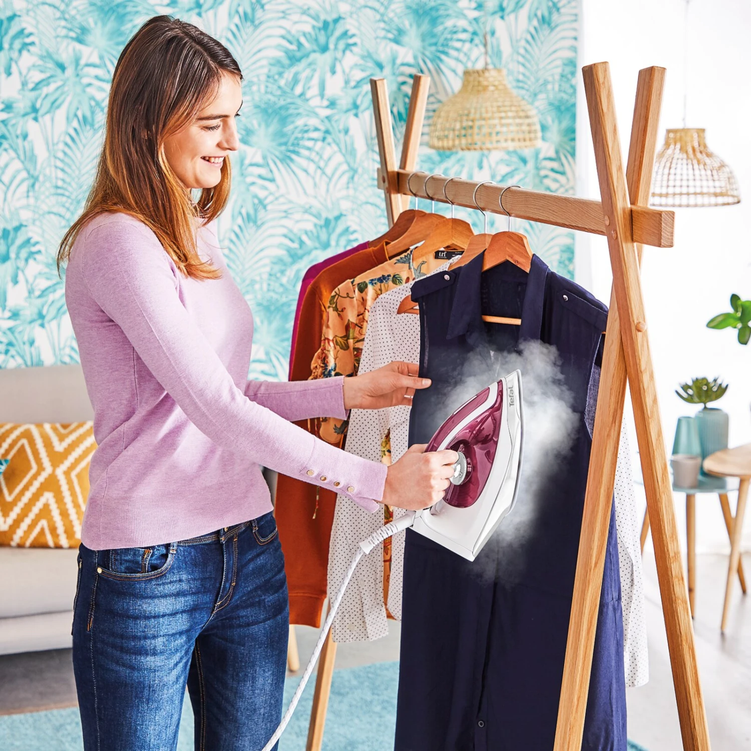 Mit dem TEFAL Dampfbügeleisen VIRTUO SV6110 kannst du deine Klamotten ideal glätten und anziehfertig machen. Mit dem Bügeleisenheck kannst du dein Bügeleisen in Ruhe abstellen, ohne sich Sorgen zu machen, dass etwas verbrennt.