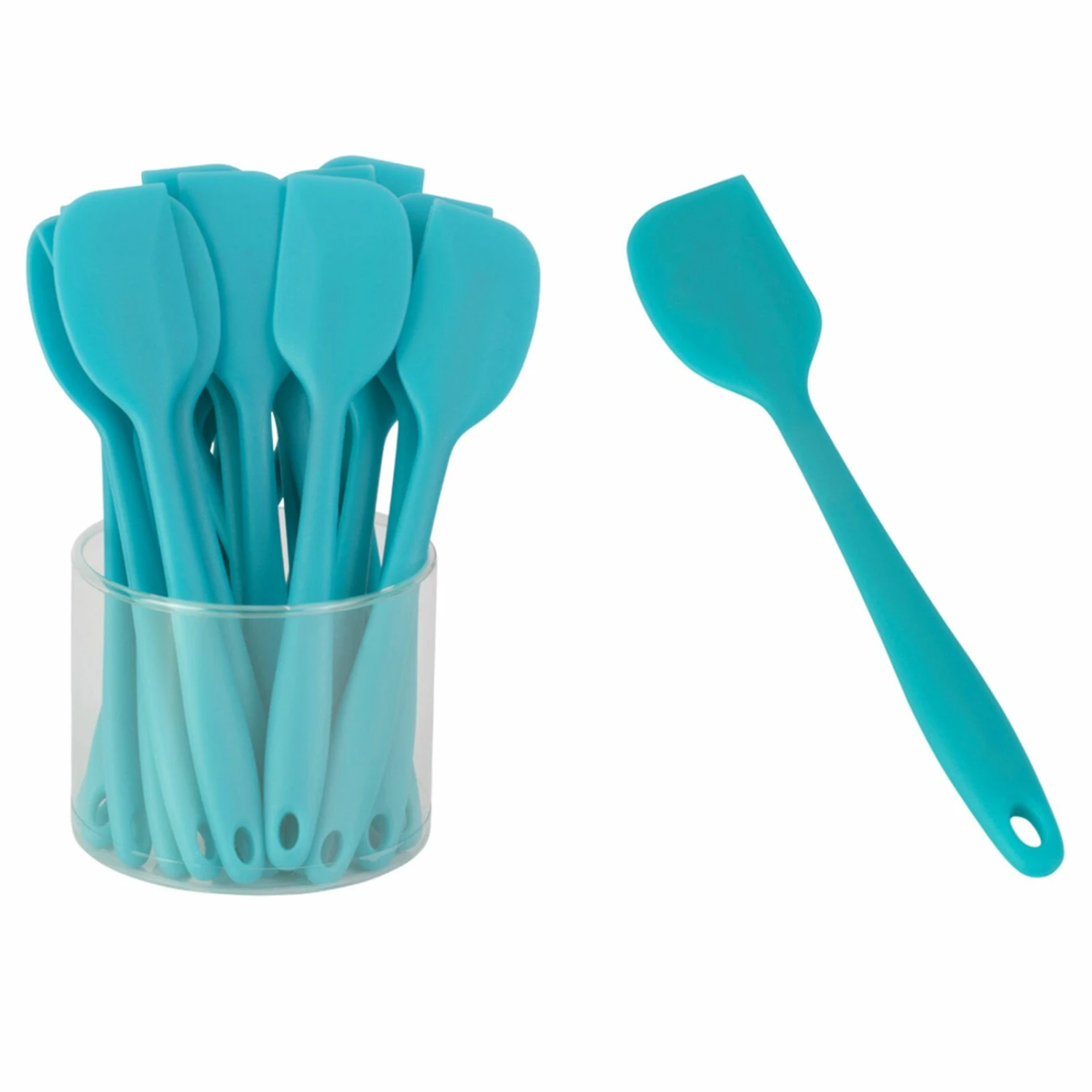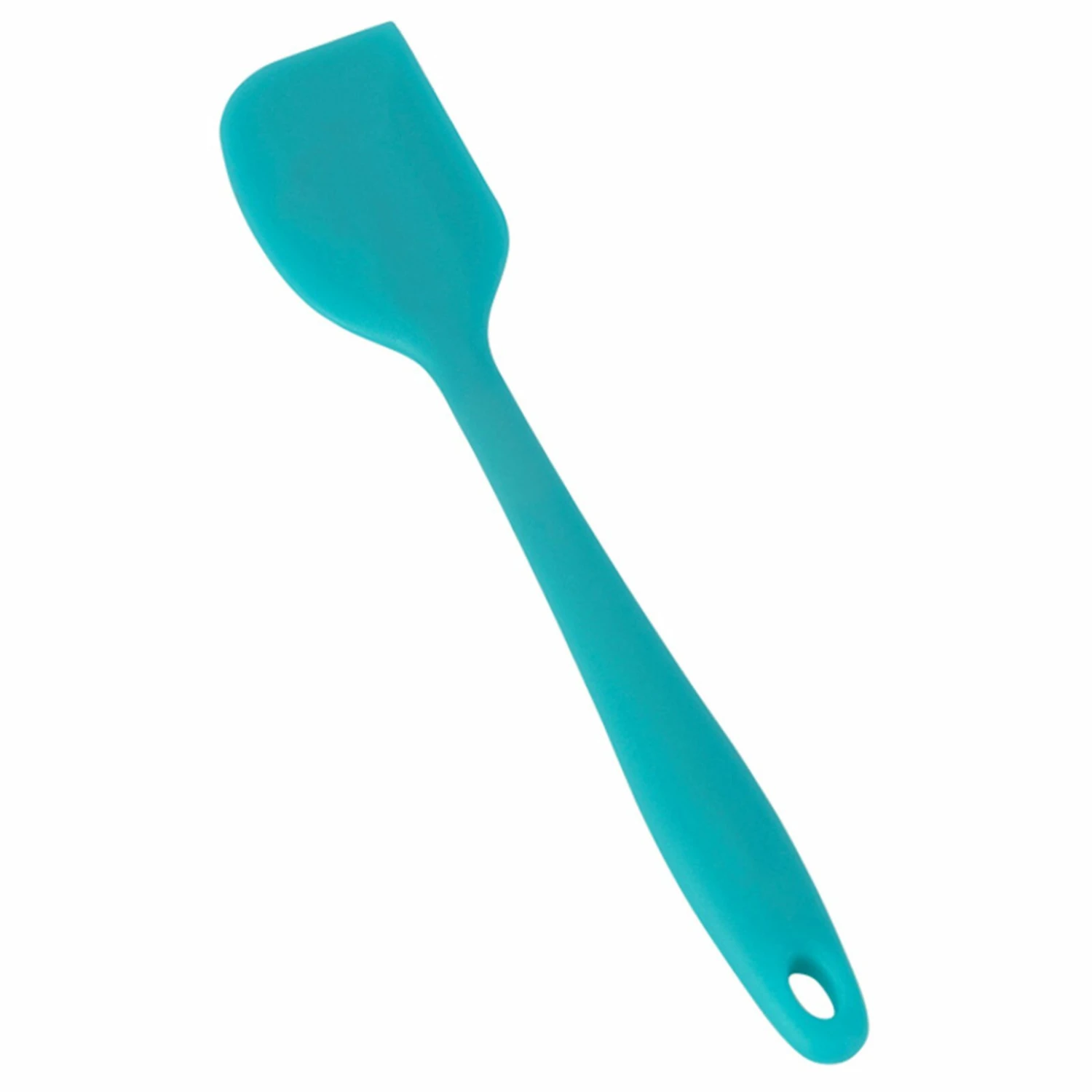 Ein aquamarinfarbener Teigschaber aus Silikon. Noch nie war Backen so farbenfroh!