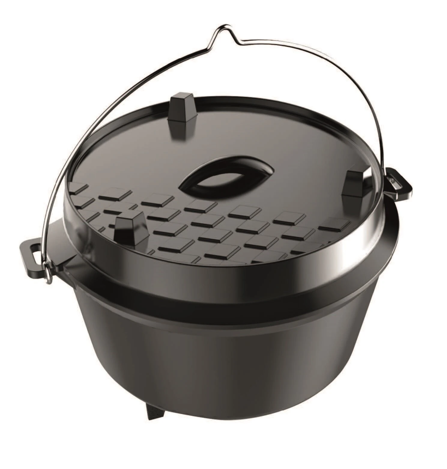 Dieser aus Gusseisen hergestellte Grilltopf ist die perfekte Ergänzung zum Grill. Sie können darin kochen, grillen oder auch backen. Dank des praktischen Henkels können Sie den Topf auch einfach übers Feuer hängen. Auch können Sie den Deckel umgedreht als Pfanne verwenden.