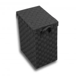 Die anthrazitfarbene Wäschetruhe Größe XL in Flechtoptik bietet Ihnen Platz für Ihre Wäsche oder andere Dinge, die Sie verstauen möchten. Sie ist ausgestattet mit einem Deckel und praktischen Trageschlaufen und sorgt für Ordnung in Ihrem Haushalt.