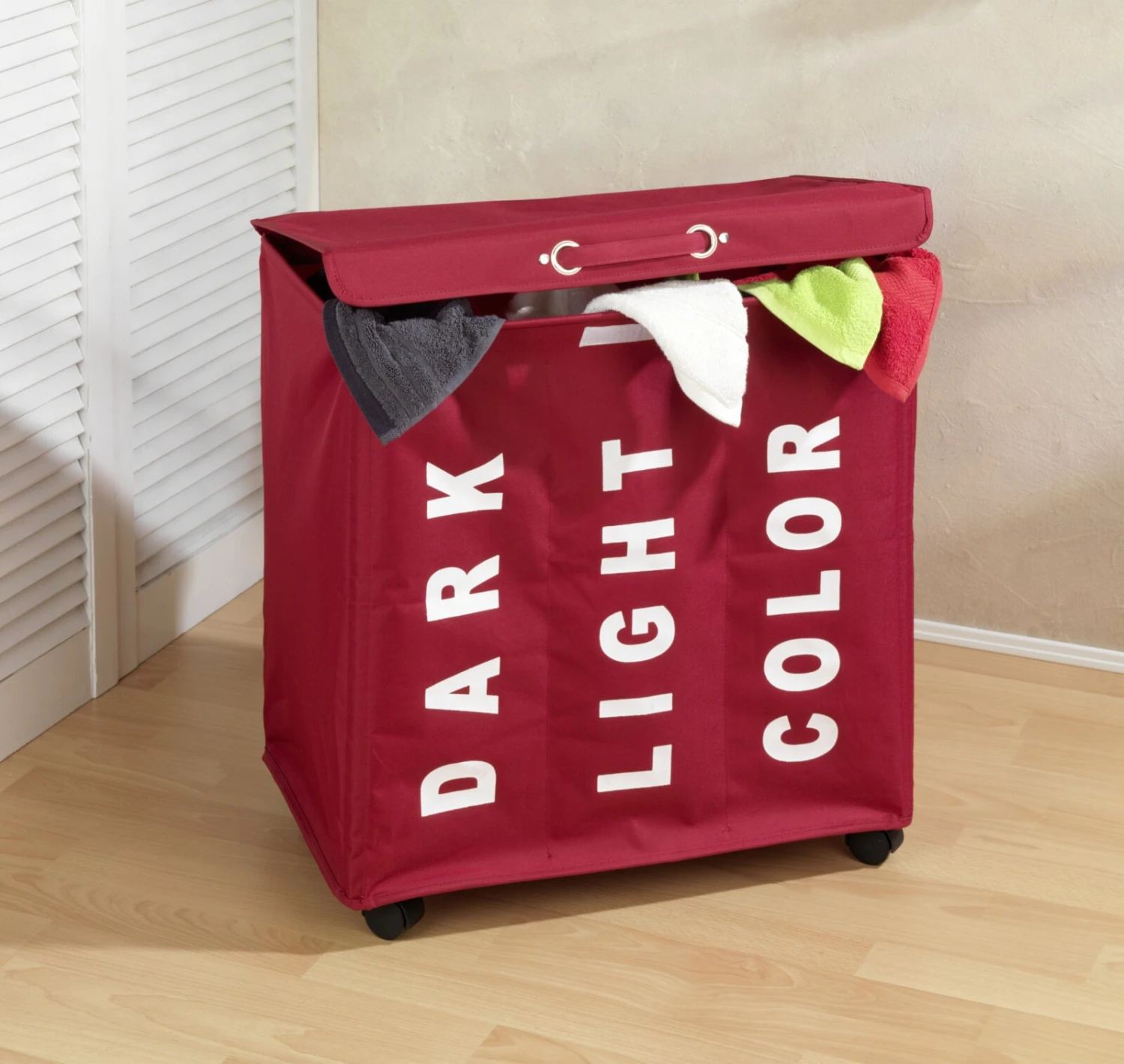 Der moderne WENKO Wäschesammler in Rot ist für die Wäschetrennung bestens geeignet. Ersparen Sie sich lästiges Vorsortieren mit den drei Kammern. Der Wäschesammler verfügt über ein Fassungsvermögen von etwa 116 Litern.